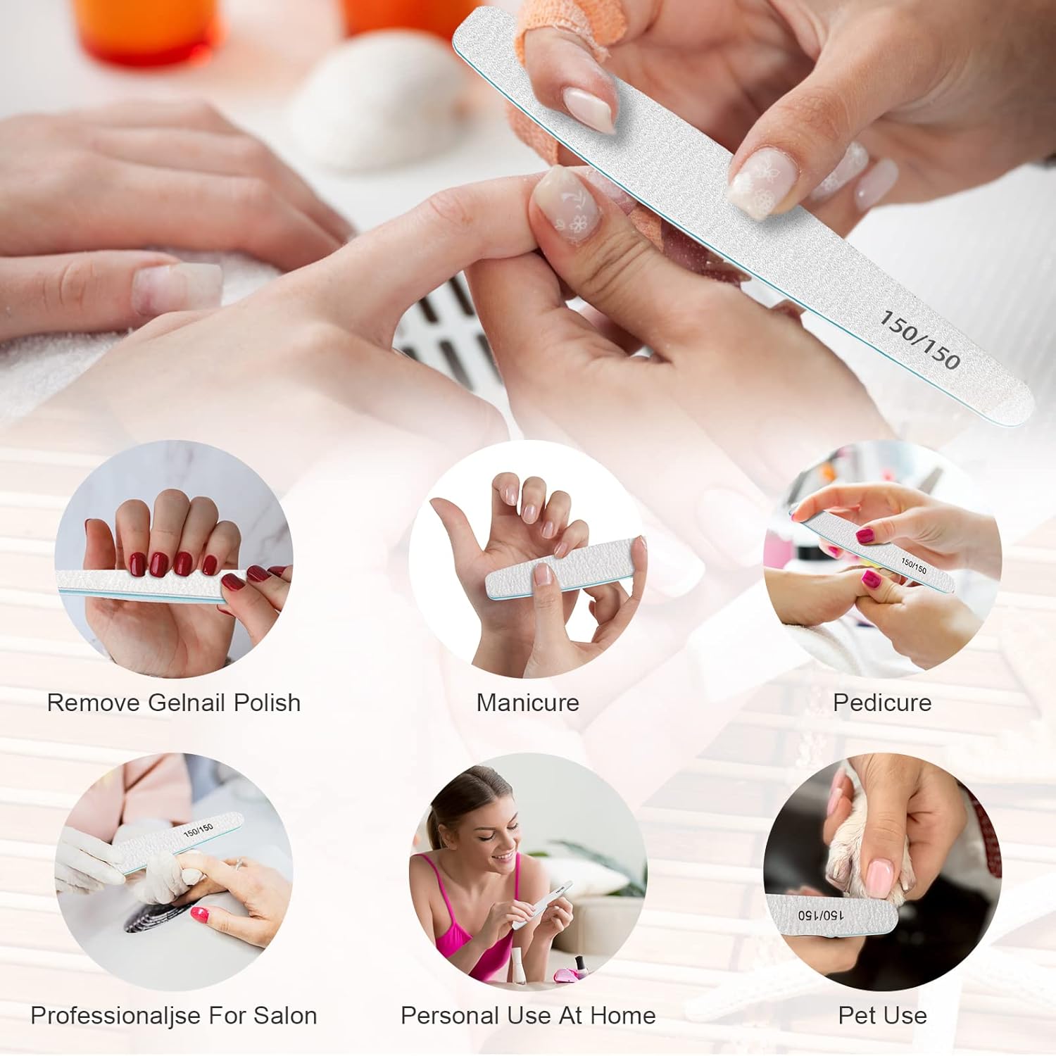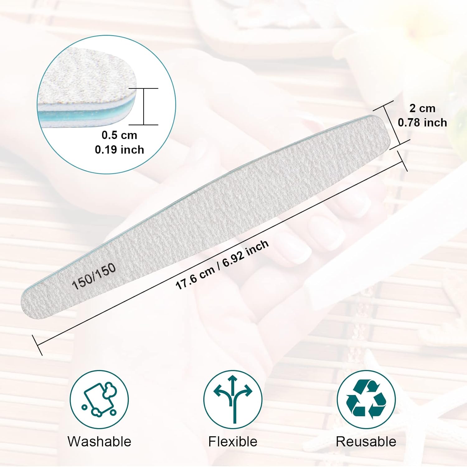 - 150/150 Grit Nail Files: Perfect size of 7.36 x 0.98 x 0.12 inches īŧ18.7*2.5*0.3cmīŧ, Delivers straight, clean sidewalls, coarse and rough gravel, polished fast, suitable for long fingernails fast grinding short