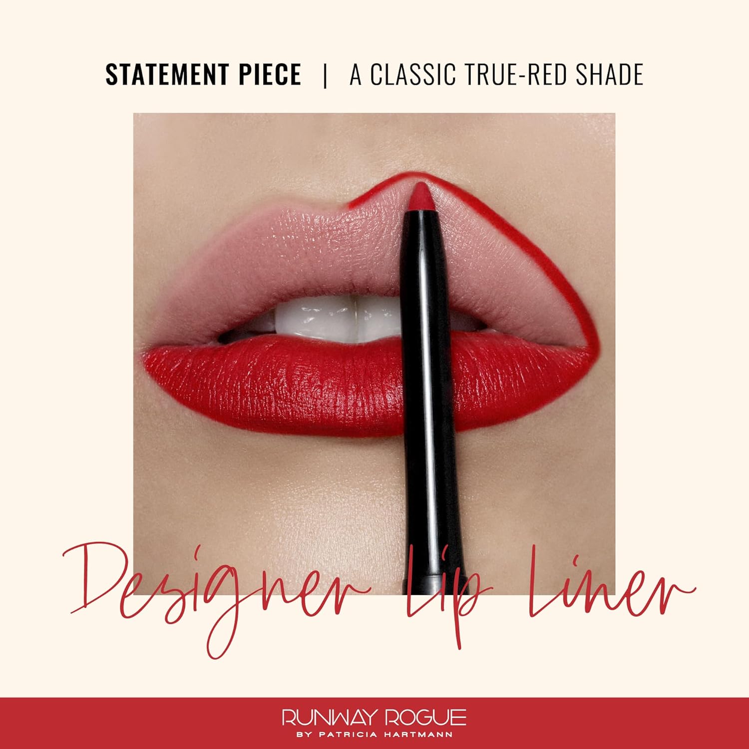 - MATTE LIP LINER PENCIL: Designer Lip Liner is a creamy matte lip pencil designed to help contour and enhance your natural lip shape, keep your lipstick in place, and prevent lipstick from feathering and bleeding while also improving its long wear and lip color. ‘Statement Piece’ is a classic true-red lip liner shade.