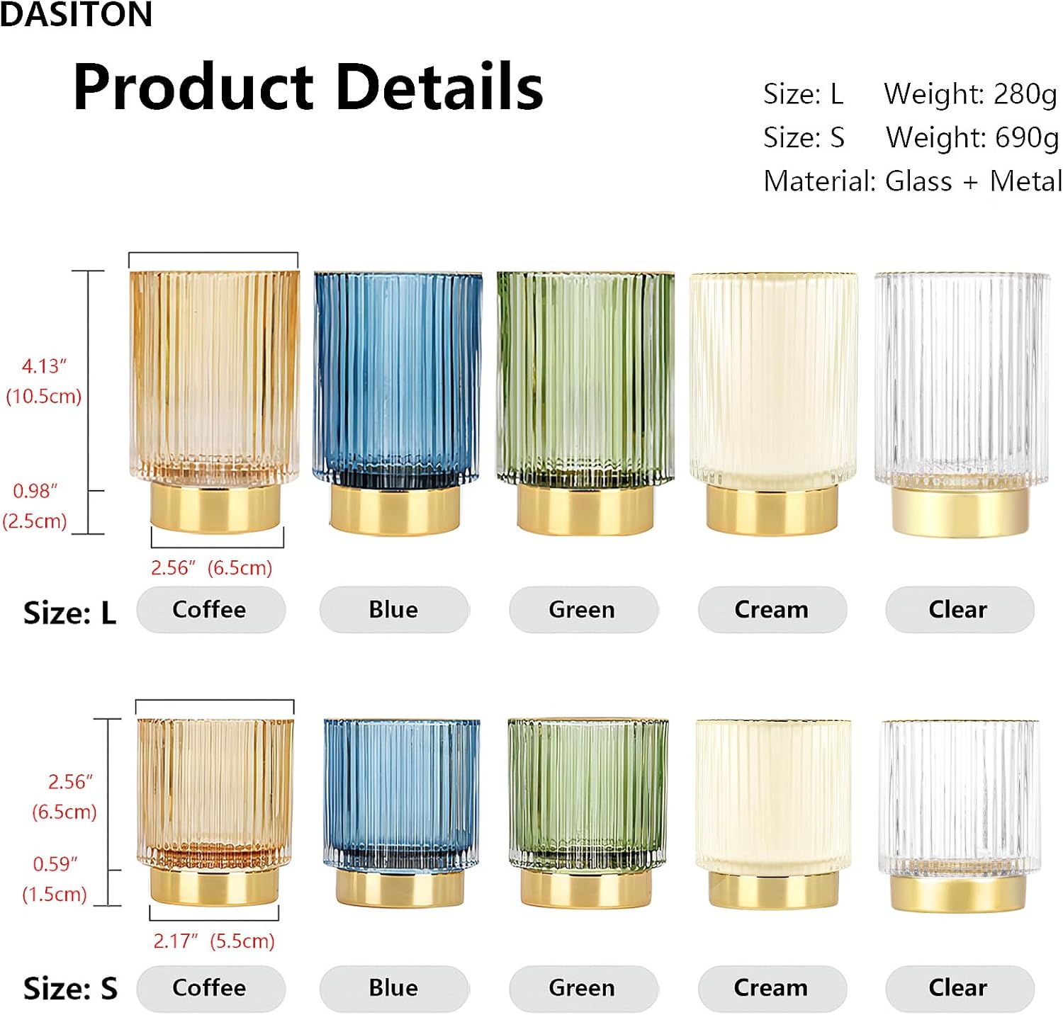 DASITON Makeup Brush holder Organizer,Crystal Cosmetic Makeup Brush Glass Brushes Storage Holder, Vintage Make Up Brush Cup Pen Pencil Holder striped vase(Blue S+L)