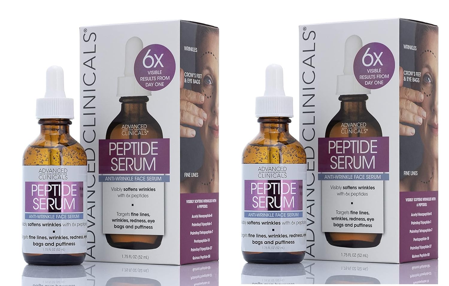 Advanced Clinicals Peptide Facial Serum Moisturizer Skin Care Oil For Face, Wrinkles, Fine Lines, & Puffiness. 6X Peptide Concentrate W/Collagen Plumps, Lifts, & Evens Skin Tone, 1.75 Fl Oz (2-Pack)