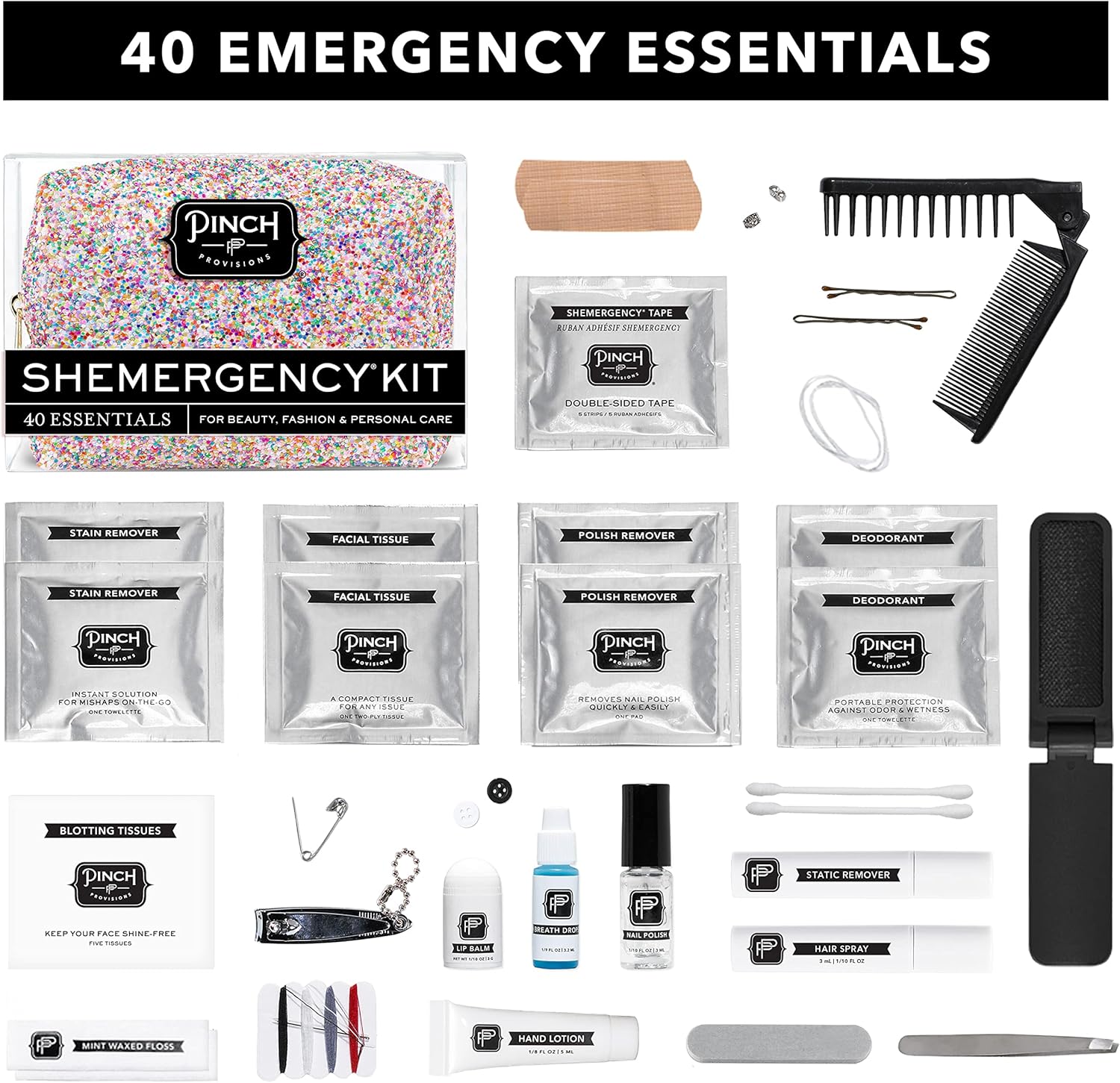 Pinch Provisions Shemergency Kit for Her, 40 Emergency Essential Items, Compact, Multi-Functional Pouch, Gift for Women, Birthday, Bachelorette Parties, and More!
