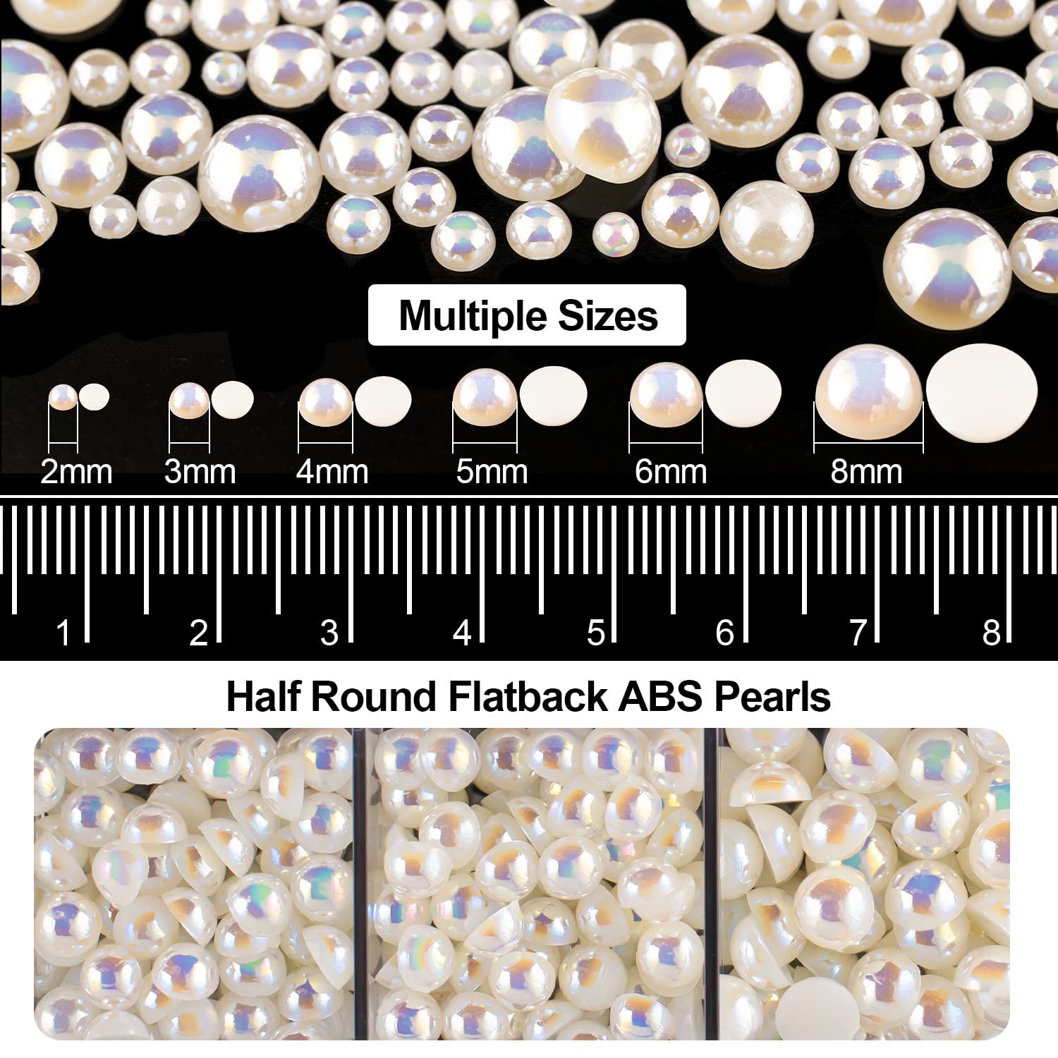 - 💎COLORFUL, MULTI-SIZE AND GREAT AMOUNT -- This Set Provides 12 Colors of Nail Rhinestones With 4 Sizes(2mm, 3mm, 4mm, 5mm), And Flatback Half Round BeigeAB Pearls With 6 Sizes(2mm, 3mm, 4mm, 5mm, 6mm, 8mm). Approximately 5060 Pcs of Gems Beads in Total.