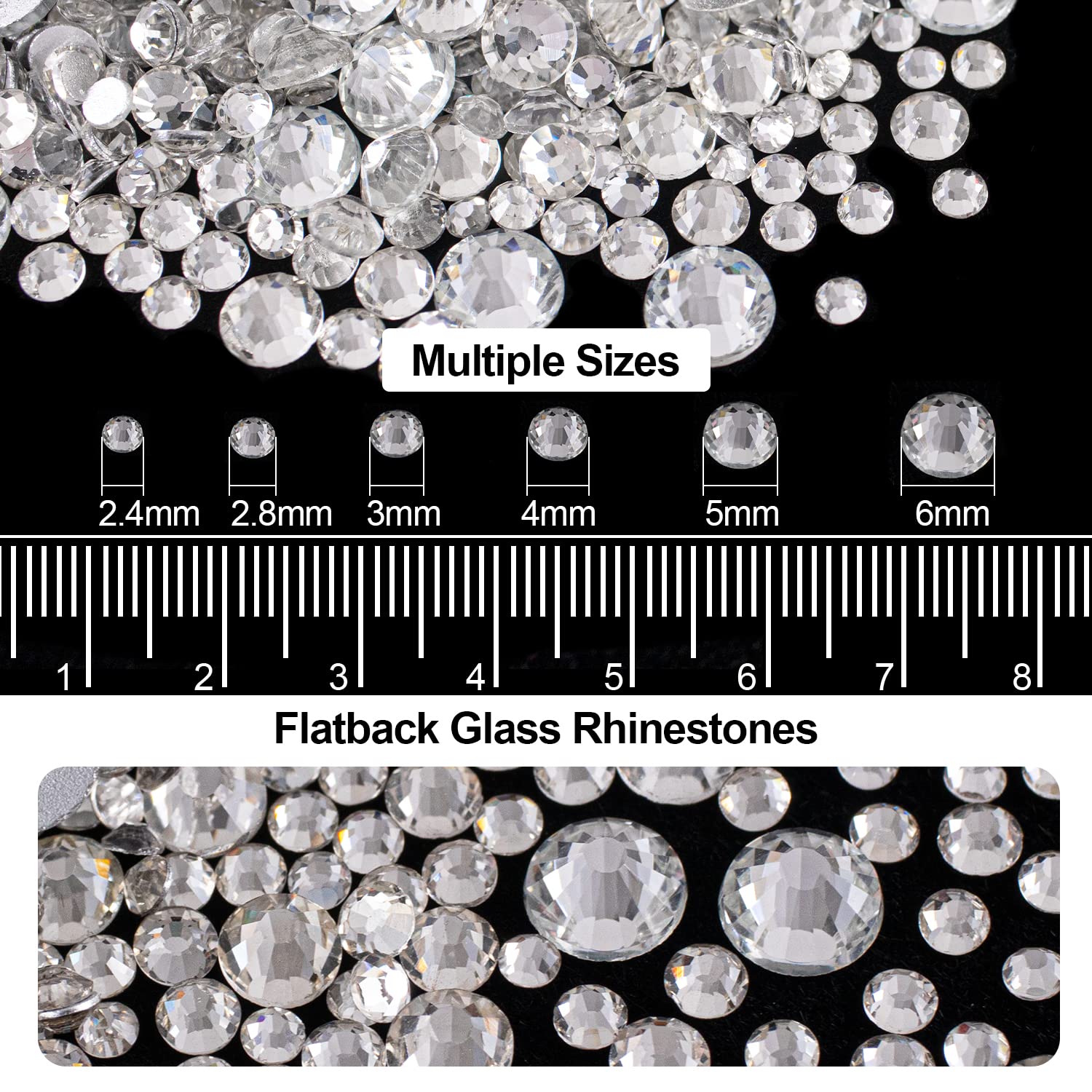 - 💎COLORFUL, MULTI-SIZE AND GREAT AMOUNT OF RHINESTONES -- This Set Provides 12 Colors of Nail Rhinestones With 4 Sizes(2mm, 3mm, 4mm, 5mm), And Flatback Round Clear Crystal Rhinestones With 6 Sizes(1.5mm, 2mm, 2.5mm, 3mm, 4.5mm, 6mm). Approximately 4520 Pcs of Rhinestone Gems Beads in Total.