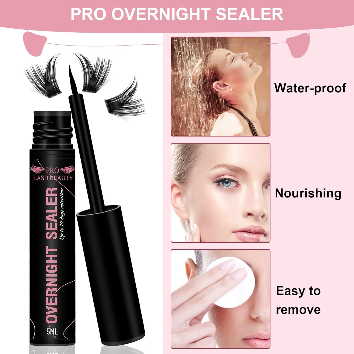 Lash Clusters Overnighter Lash Sealer for Cluster Lashes DIY Lash Extension Overnight Sealer Extend Lash Wear Up to 14 Days Lash Sealer Long Lasting Easy to Remove 5ml Black