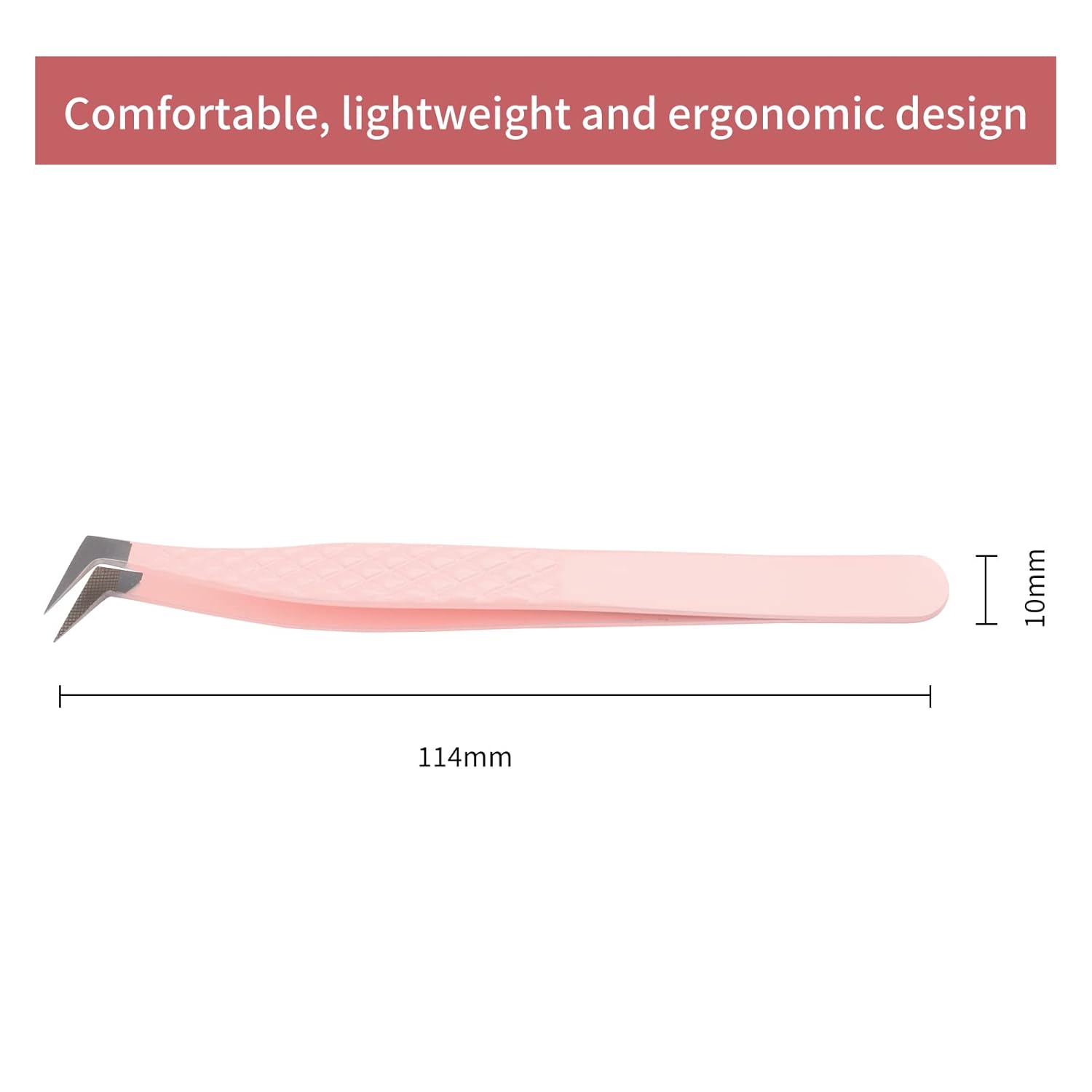Lash Extension Tweezers Fiber Tips Volume Lash Tweezers Curved Precision Pink Eyelash Tweezers 90 Degree Angle Boot Great for Larger Fans Eyelash Extension Tweezers Professional