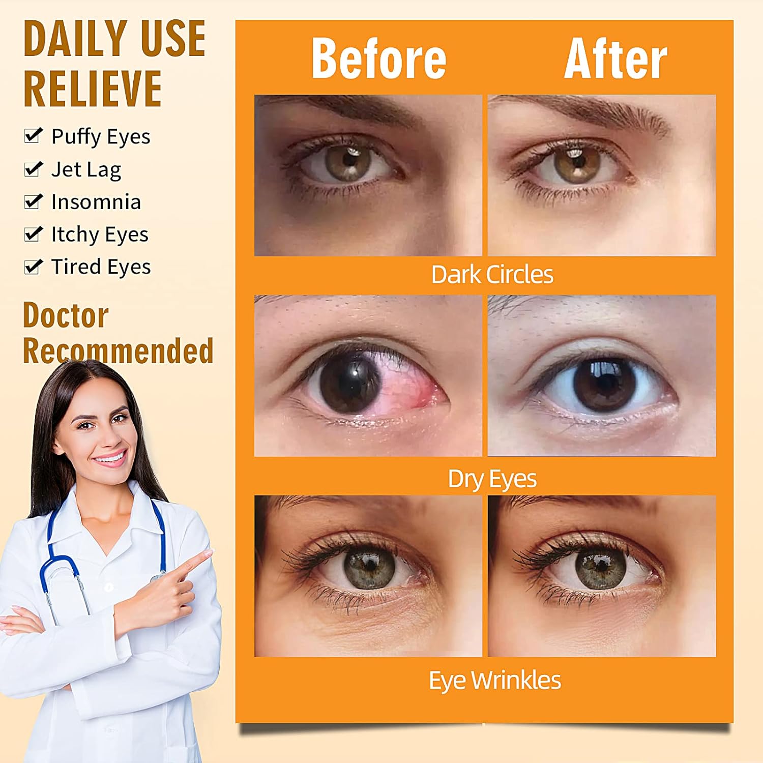 - Self-Heating Steam Eye Mask: This hot compress steam eye mask brings great skin comfort to your eye environment. An effective way to relieve work stress. It will be : 1: Gentle for sensitive eyes; 2: Promotes blood circulation; 3: Reduces dark circles; 4: Soothes the skin around the eyes.Treat yourself to an eye spa after a long day at work. It is an ideal package for business trips and travel and ideal option for present