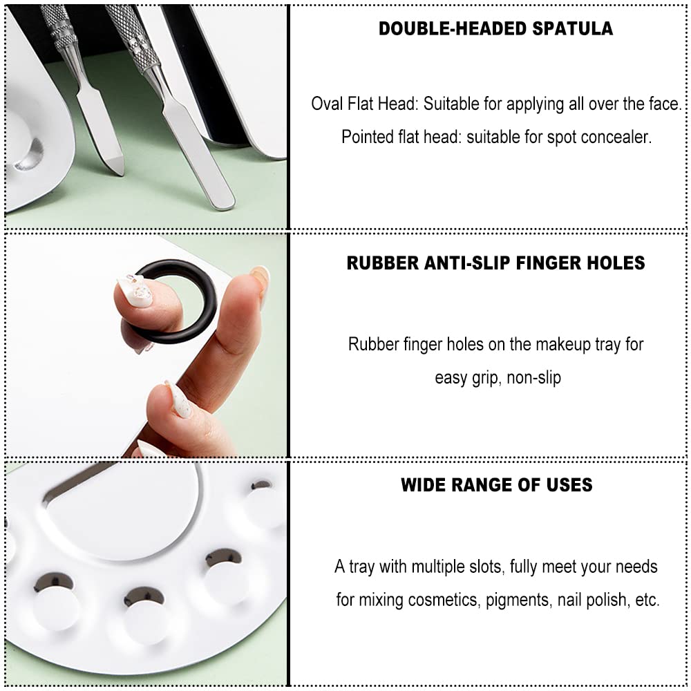 - 【Easy to Use】Each stainless steel foundation palette designed with a hole on the edge, covered with a black rubber ring, convenient and comfortable for you to hold.