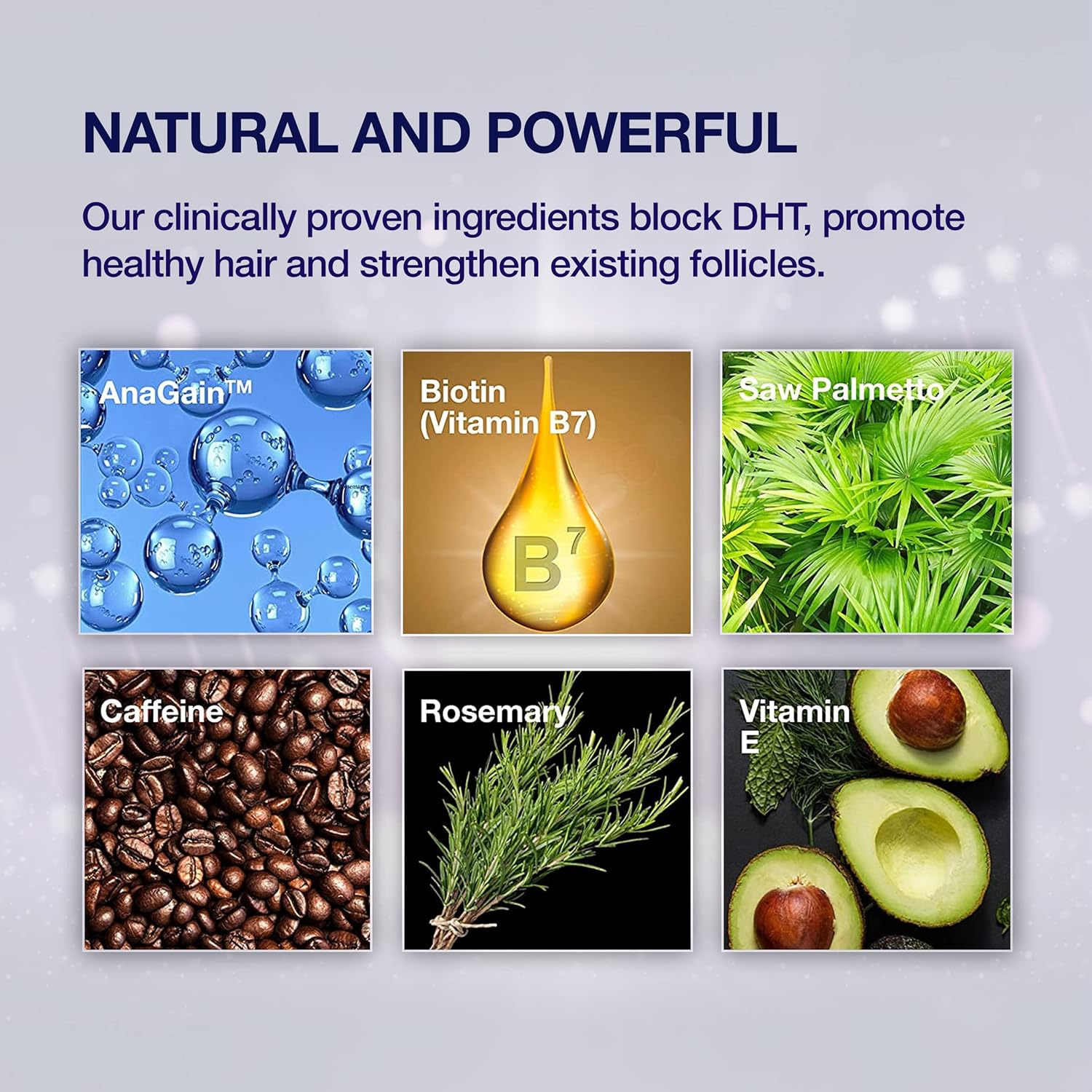 - WORKS FOR ALL HAIR TYPES: Clinically Proven Results. Our unique formulation contains Anagain which delivered these results in clinical trials - 92% said their hair regrew - 95% said hair Loss Decelerated - 80% said hair is Less Breakable - 95% said hair Looks Improved.