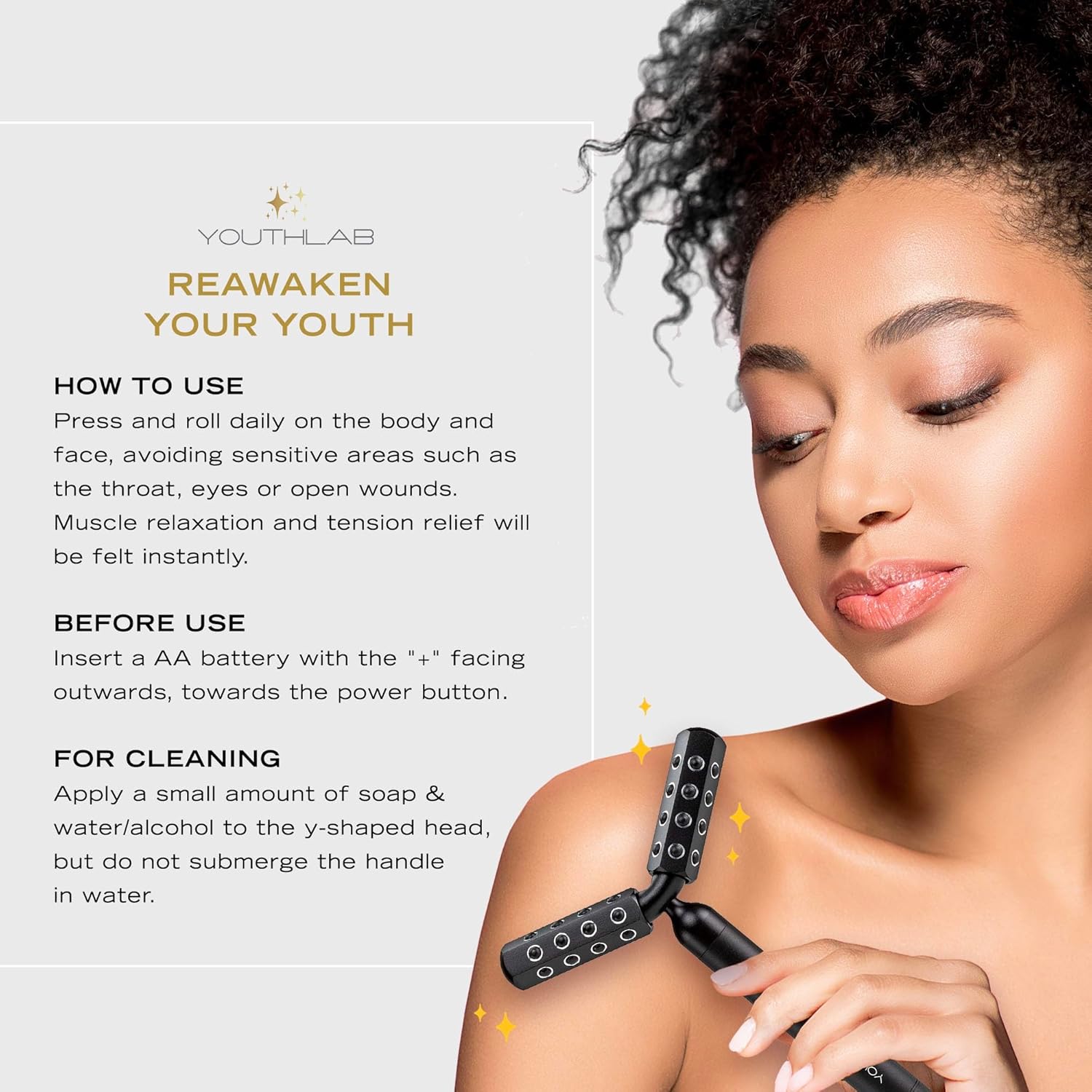 - RELAX AND UNWIND: The rhythmic rolling action and unique โY-shapedโ head delivers a soothing massage across the face, neck, arms, legs, and jawline โ perfect for refreshing tired skin and melting away daily stress.