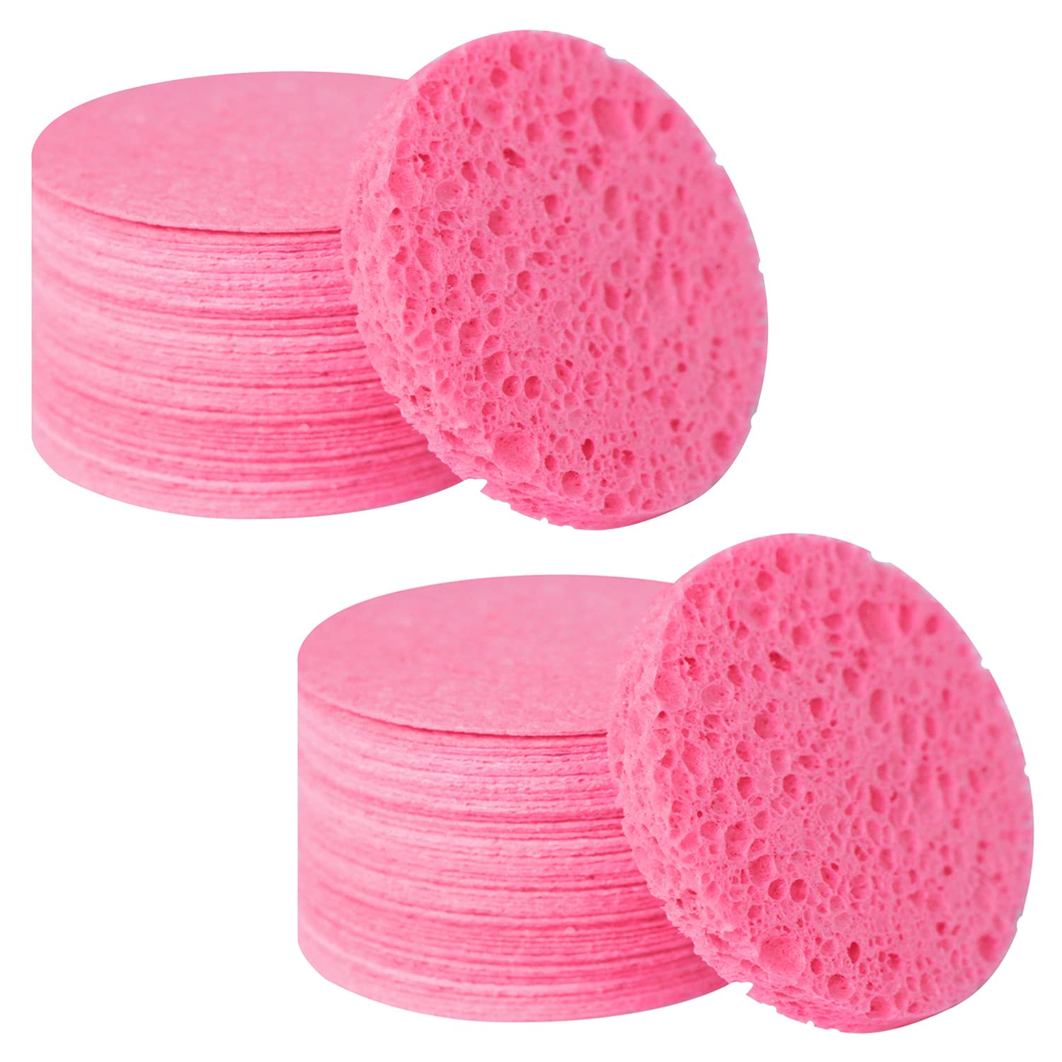 100-Count Facial Sponges Compressed Natural Cellulose Sponge Round Shape Face Sponge for Face Cleansing Exfoliating and Makeup Removal, Pink