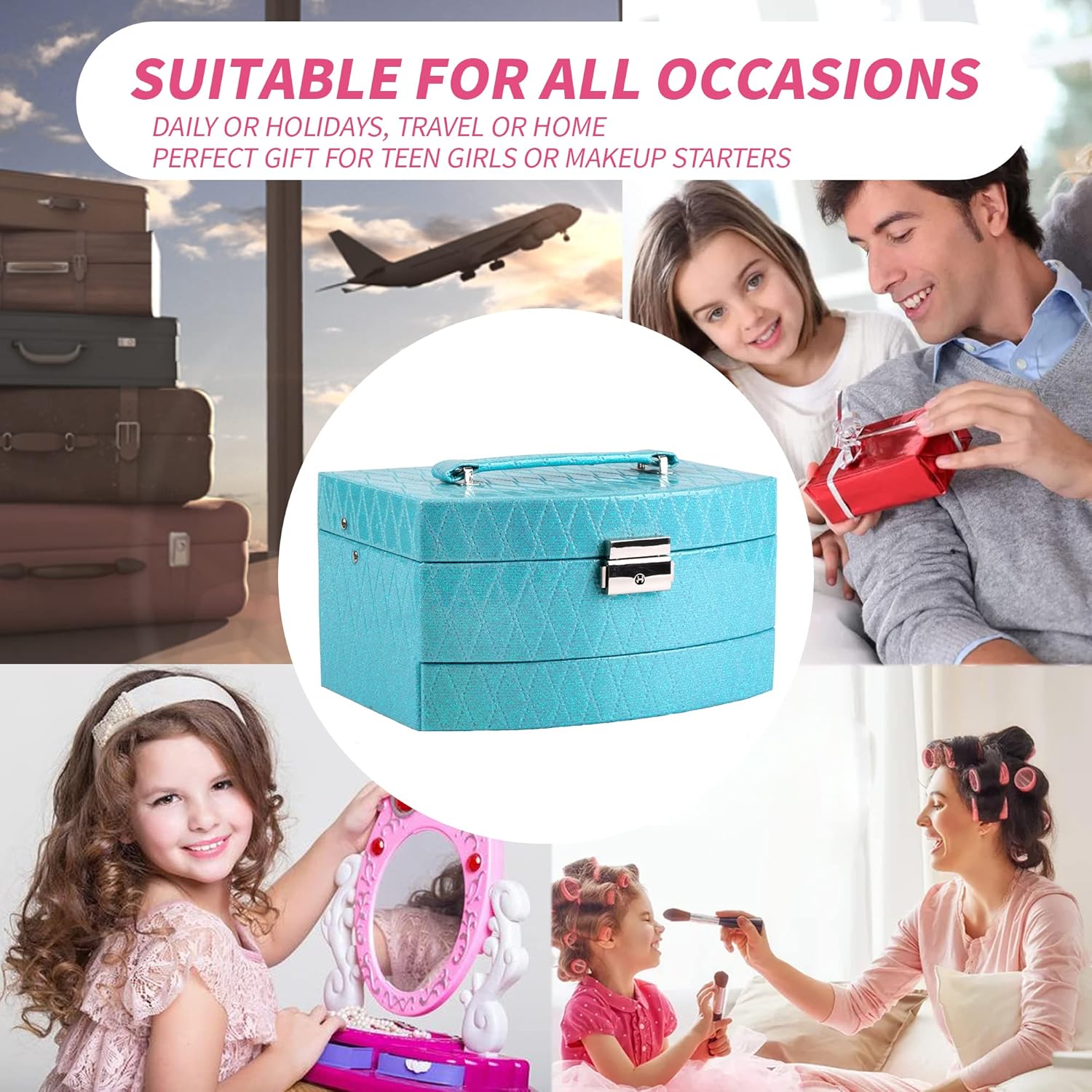 - IDEAL GIFT FOR LOVED ONES: This beautiful train case with makeup and tools is an excellent present choice for your teen daughter, granddaughter, niece, mom, girlfriend or wife for Birthday, holidays like Christmas, Halloween, Women’s Day, Mothers’ Day and wedding anniversary.