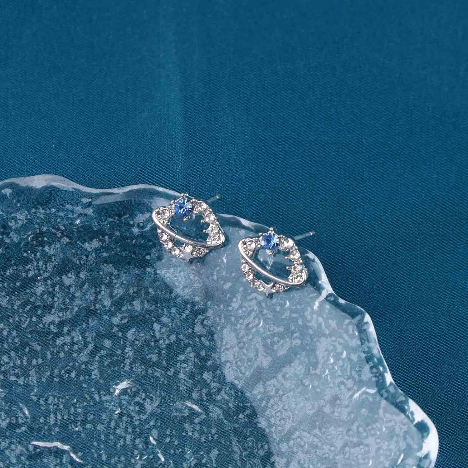 Boho Crystal Saturn Earrings Cz Orb Planet Earrings Silver Rhinestone Circle Earrings Tiny Sapphire Stud Earrings Jewelry for Women and Girls