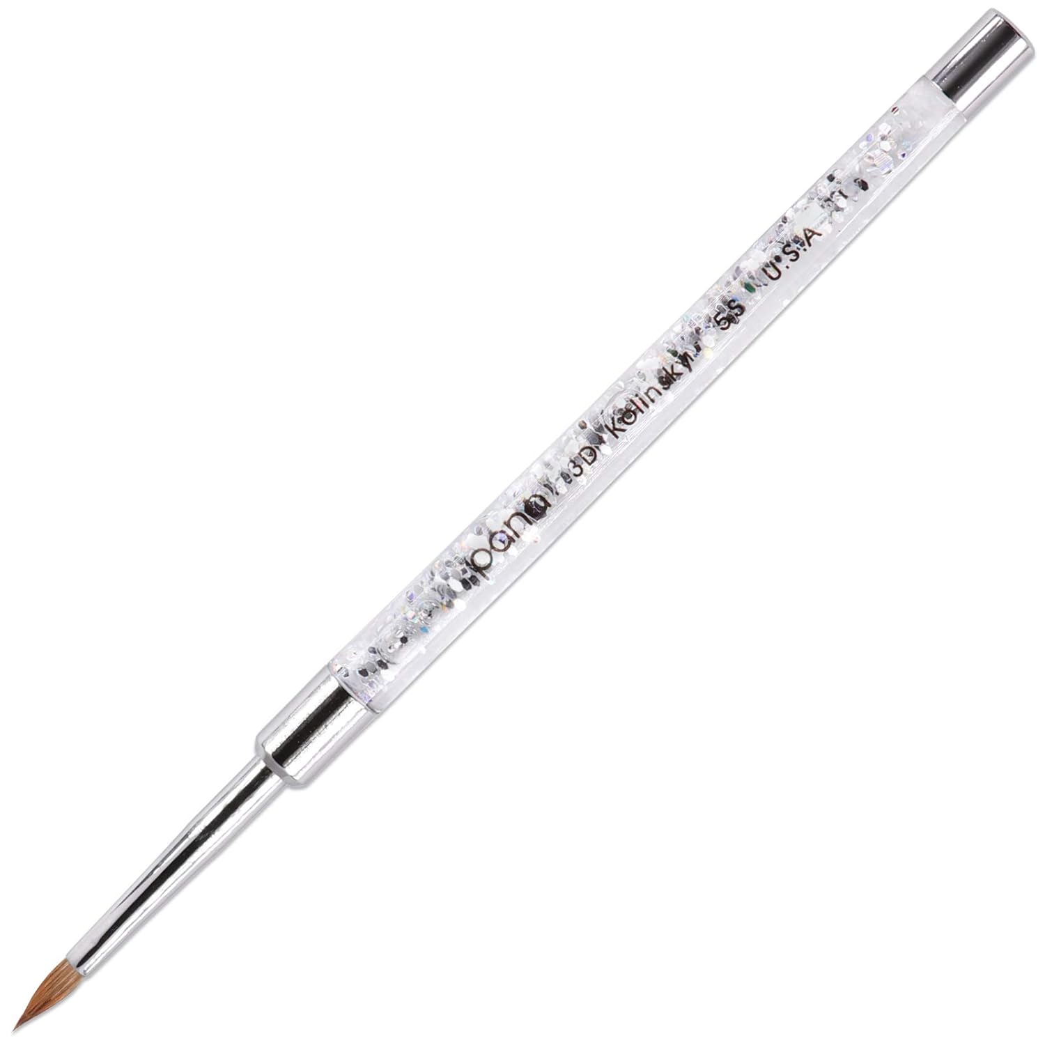 PANA 3D Kolinsky Nail Art Brush - Silver Glitter Handle, Size 5 - Acrylic Nail Art Sculpture Brush for Manicures Pedicure Salon Professional or Beginner