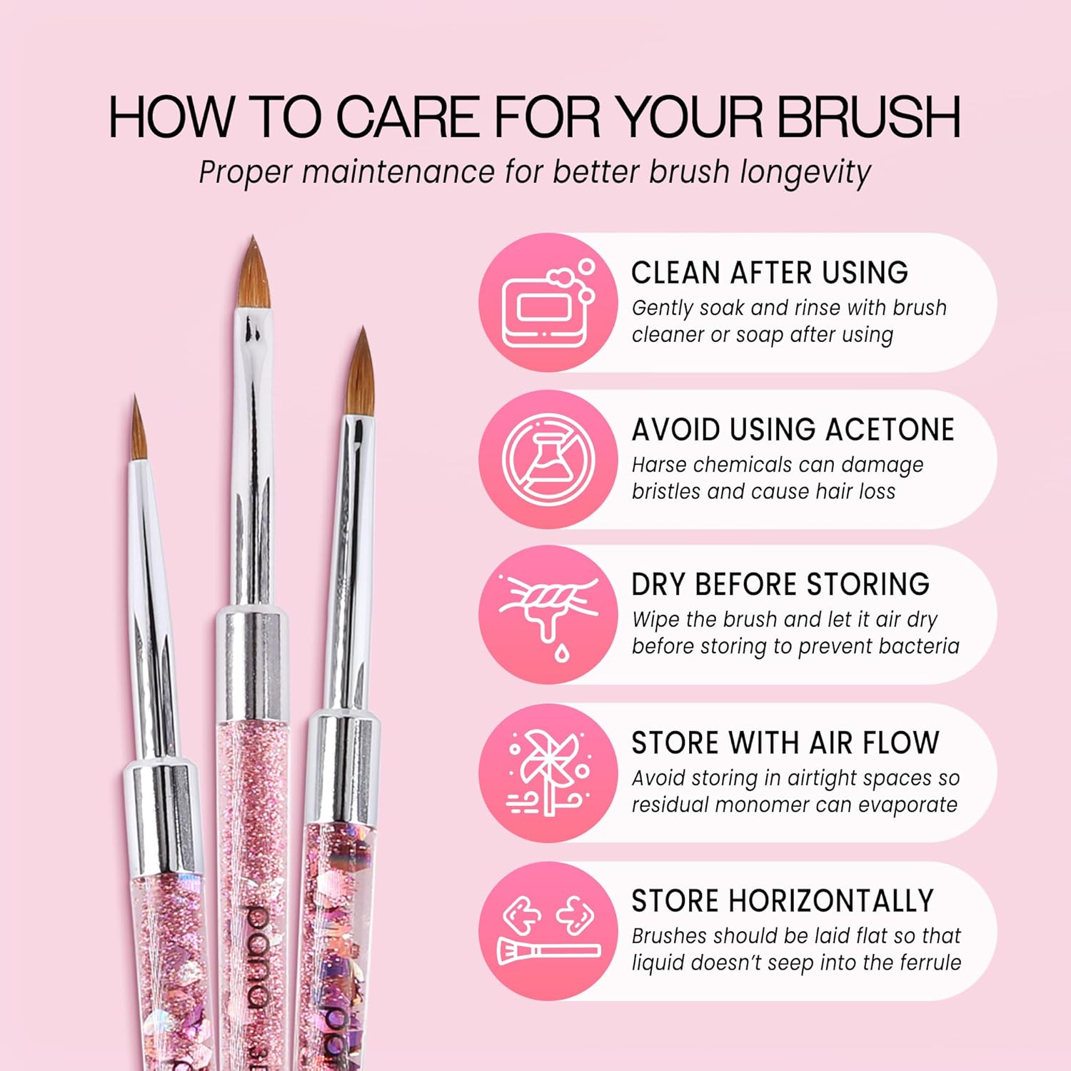 PANA 3D Kolinsky Nail Art Brush - Pink Glitter Handle, Size 2 - Acrylic Nail Art Sculpture Brush for Manicures Pedicure Salon Professional or Beginner