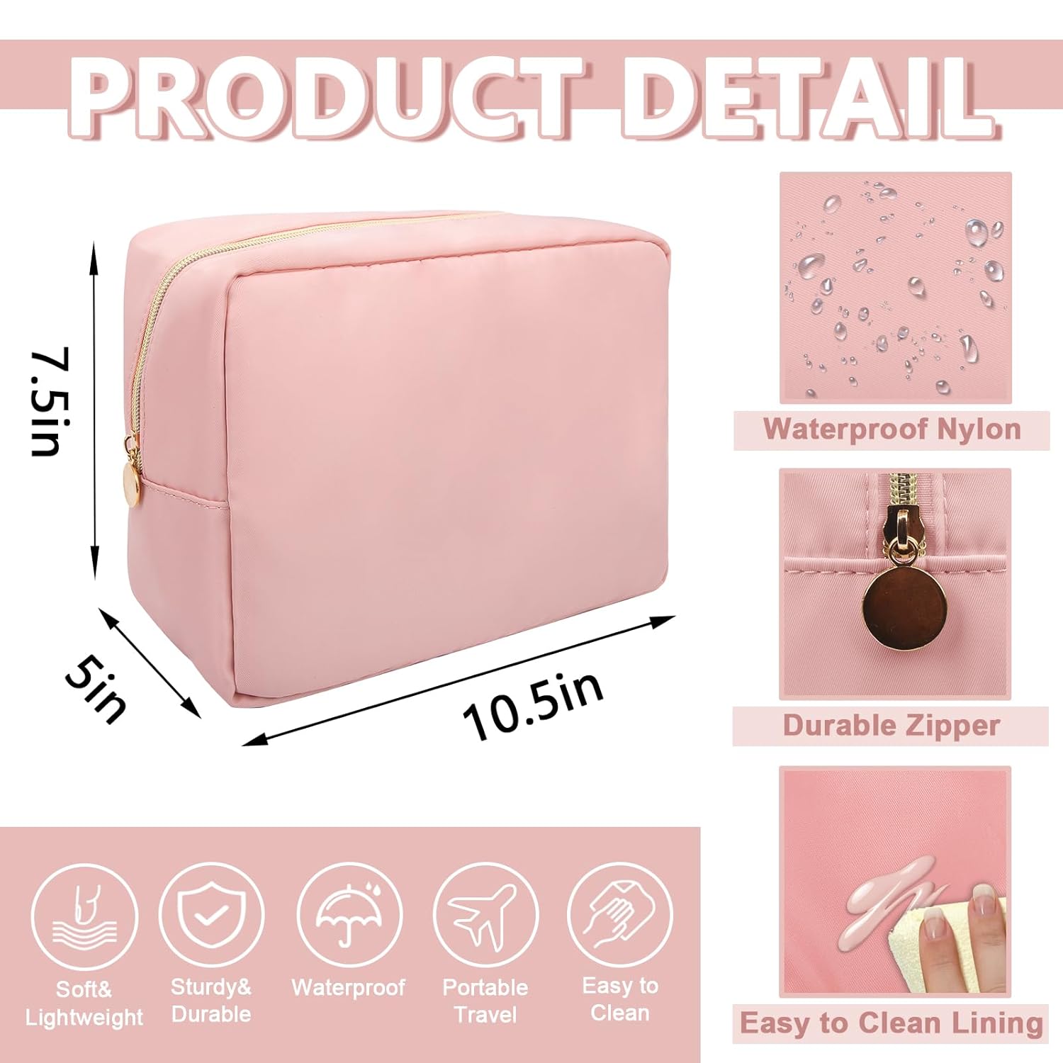 - 【Smooth&Sturdy Zipper】The nylon makeup bag has a metal zipper. The smooth and sturdy zipper is perfect for storing your daily essentials and preventing items from falling out of the bag.The smooth and sturdy zipper zipper allows you to have a good sense of use.