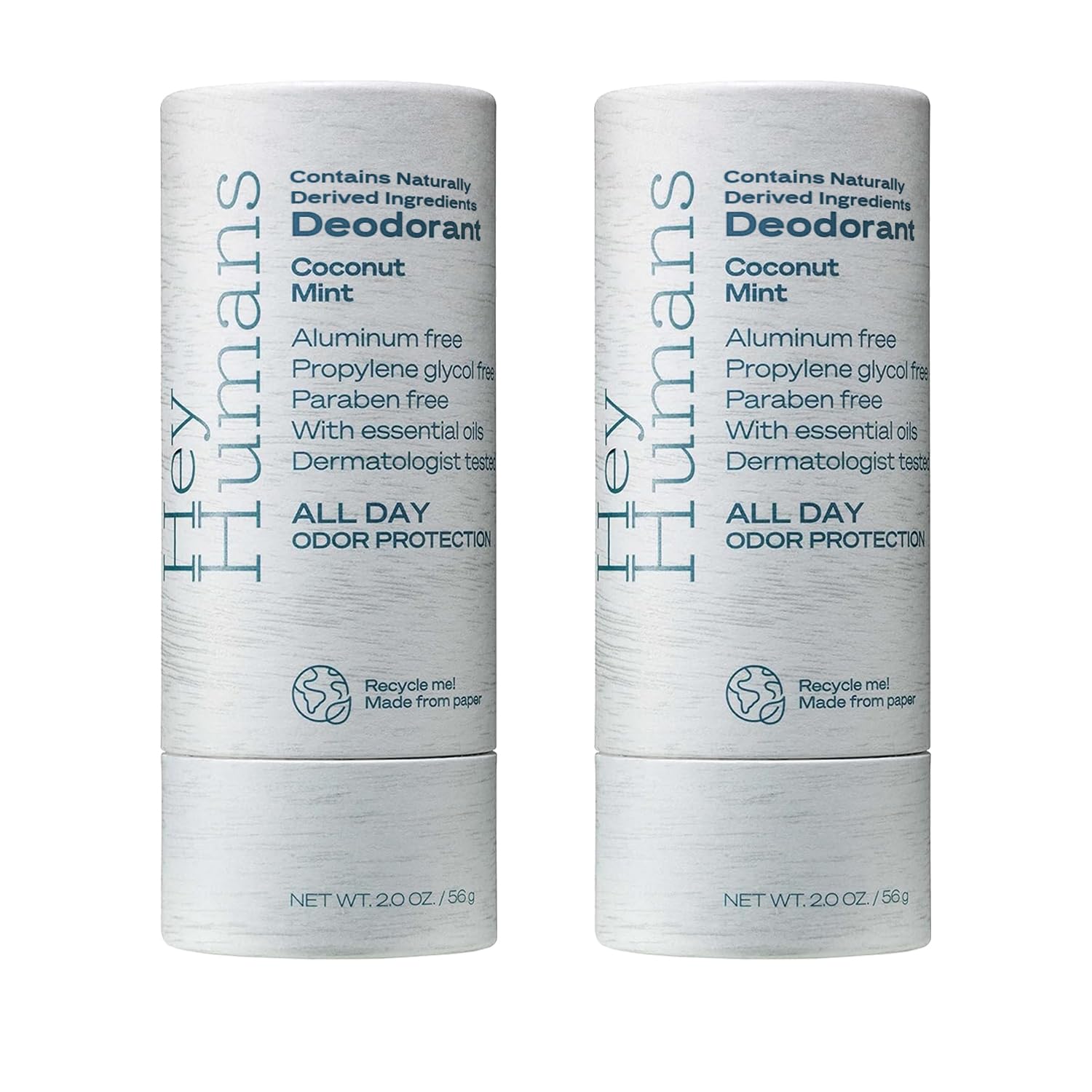 Hey Humans Deodorant, Aluminum Free Deodorant for Women and Men, Contains Naturally Derived Ingredients, All Day Odor Control, Refreshing Essential Oils, Earth Friendly Package, Coconut Mint
