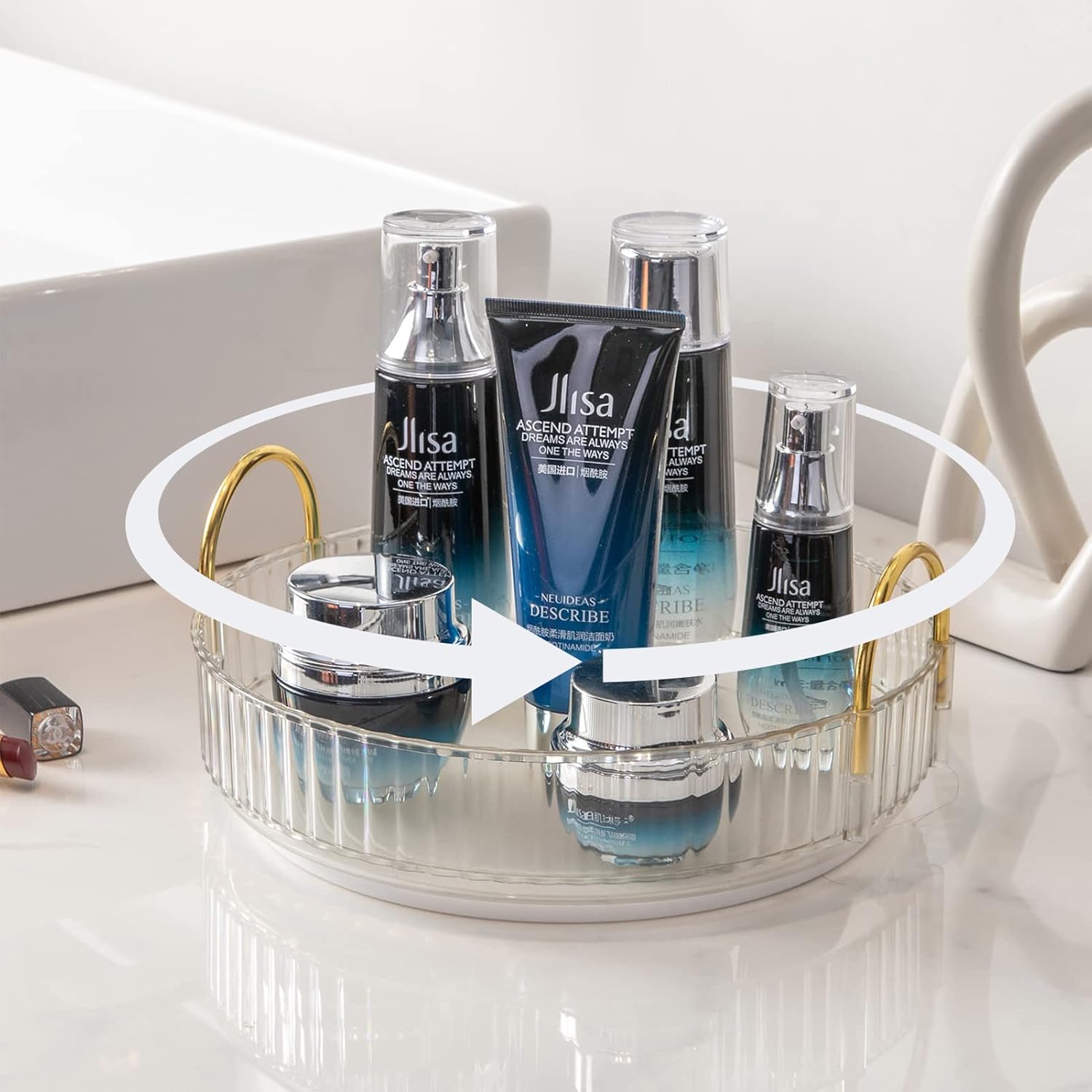 Rotating Makeup Organizer for Vanity, High-Capacity Skincare Clear Make Up Storage Perfume Organizers Cosmetic Dresser Organizer Countertop 360 Spinning (Clear, 1 Tier)