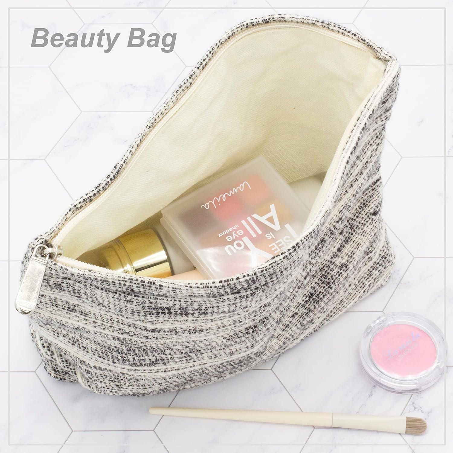 Makeup Bags for Purse Zipper Cosmetic Pouch Large Travel Canvas Make Up Organizer Tool Pouch for Women and Girls,Ripple Grey