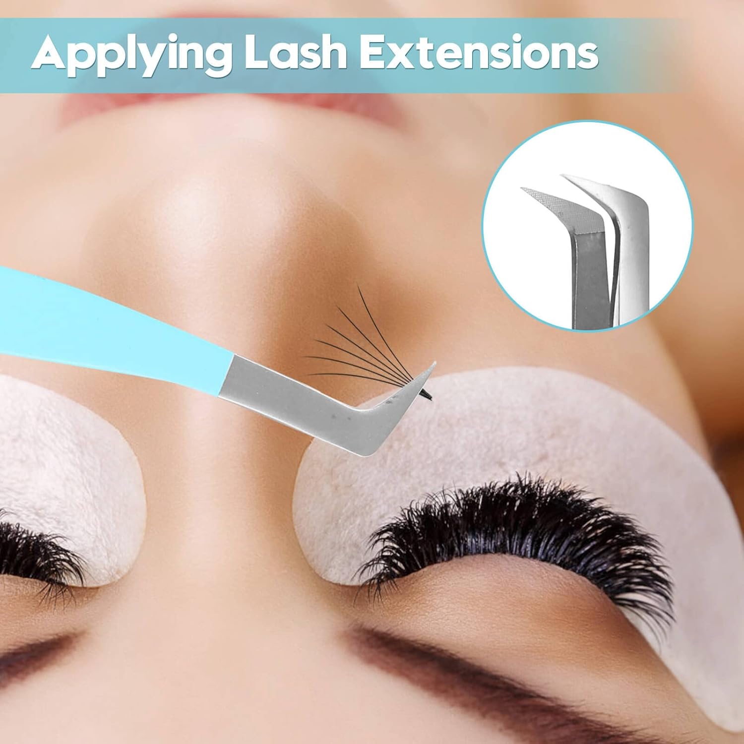 - ★Fiber Tip 90 Degree Boot Tweezers:Specifically designed with a microfiber tip Special microfiber tip—All over sweet spot with an amazing grip, picking up the lashes without falling apart.