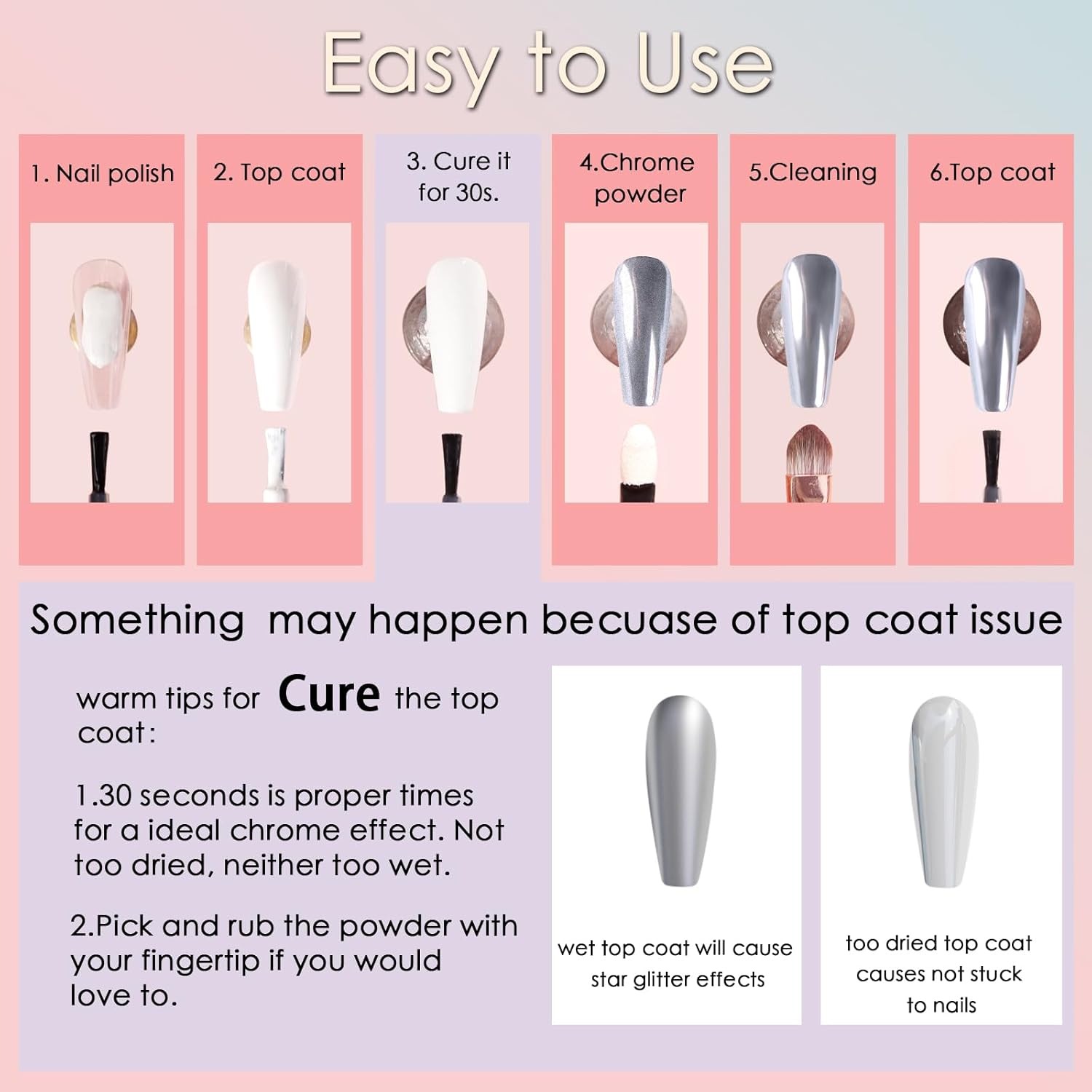 - Ultra Excellent Texture: The gold nail chrome powder is fine and smooth without particles feeling, so you can make your nails exquisite with an amazing mirror effect. And the pink chrome nail powder is non-toxic, more durable, and environmentally friendly, which does not harm your nails and skin, using it more at ease. Make mirror effects for your nails with our excellent equality chrome powder set.