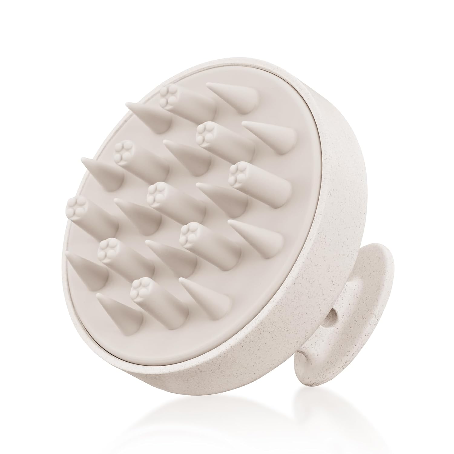 HEETA Hair Scalp Massager for Hair Growth, Shampoo Brush, Scalp Scrubber Exfoliator with Soft Silicone Bristles for Dandruff Removal to Relieve Stress, Wet Dry Use Updated Material, Beige