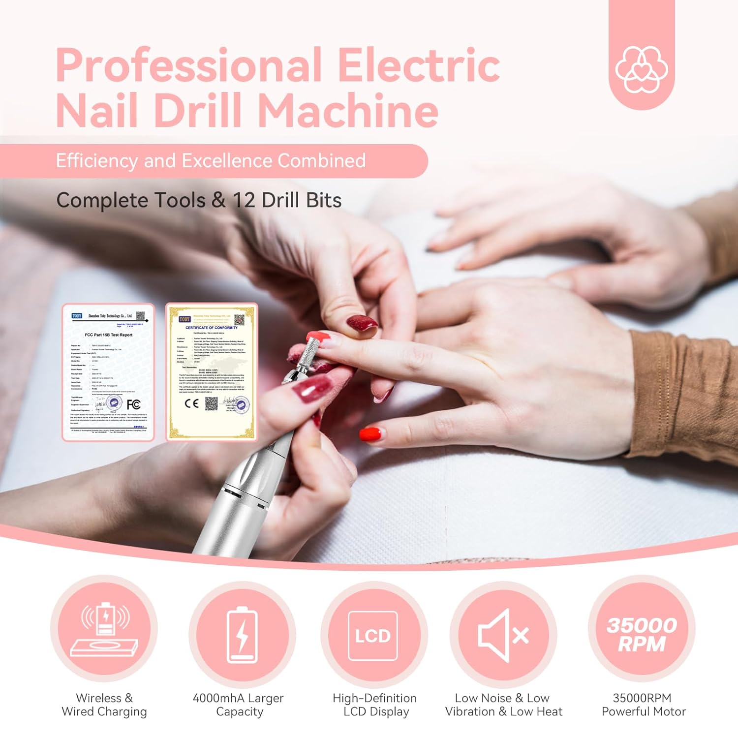 - Professional Electric Nail Drill Machine: Saviland portable electric nail drill set comes with a nail drill machine and a nail drill pen, up to 35000 RMP. The electric nail file has a compact and lightweight design that can be easily carried around, not only for home, but also perfect for travel.