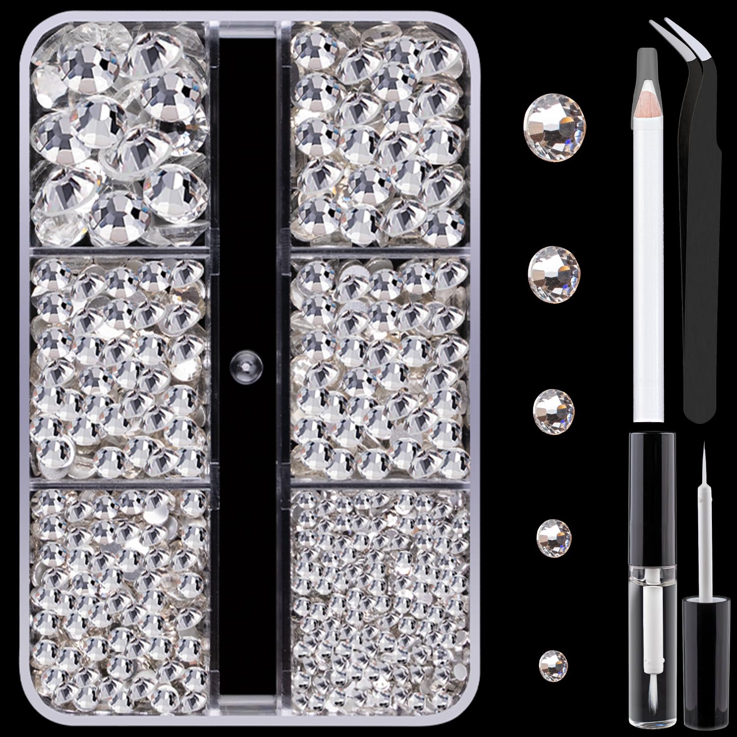 - ❤FACE DIAMONDS MAKEUP KIT--You will get 1 box of round flatbacked clear glass gems with different sizes(2/3/4/5/6mm), 1 makeup glue, 1 pickup pencil and 1 tweezers. This set is professional enough to satisfy your makeup needs and create your own beauty. The box is designed with independent lid for each grid which can help you store the gems and distinguish different sizes.