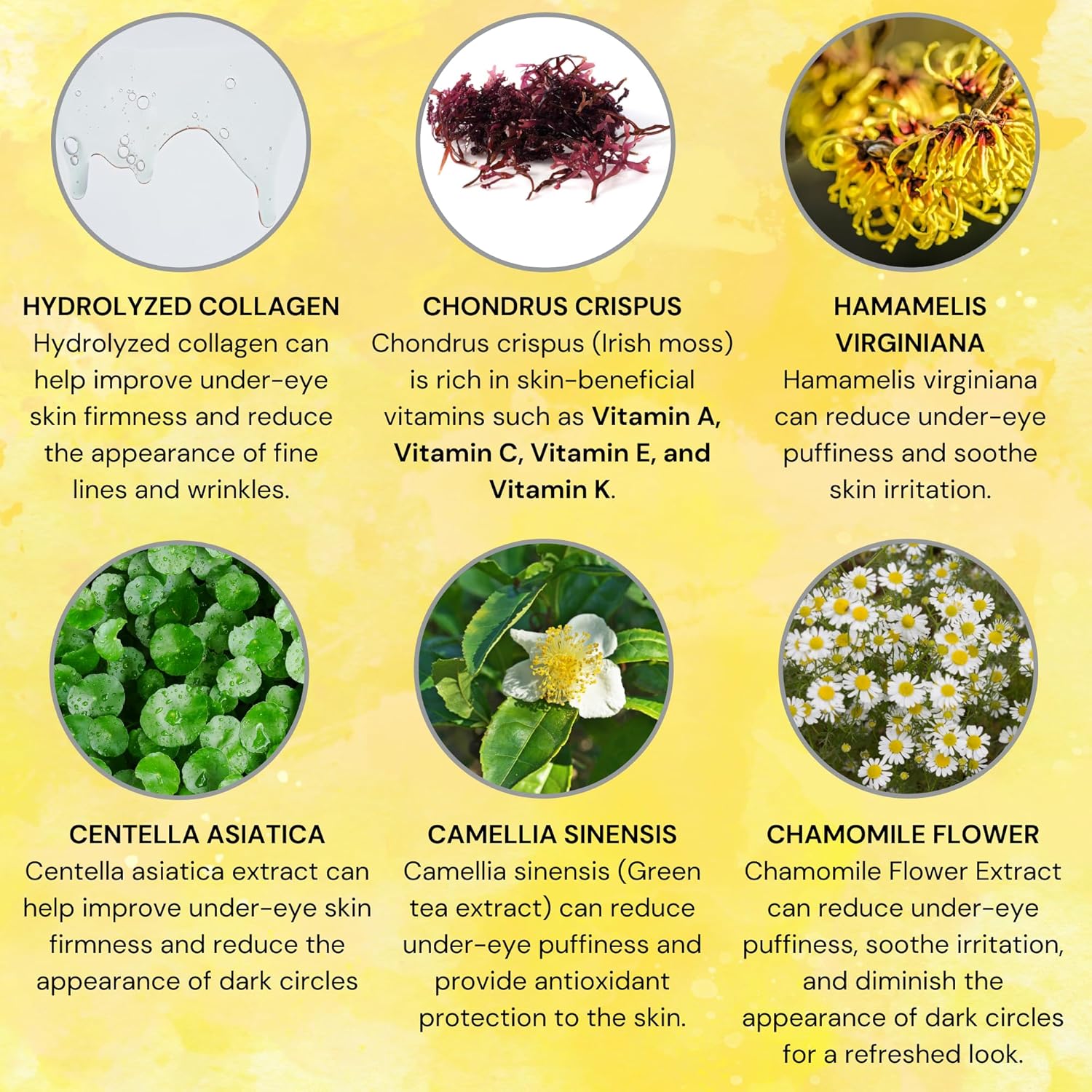 - Gentle & Effective Formula: Our eye treatment features safe ingredients like collagen and natural plant extracts. Soothe, repair, and protect the delicate skin around your eyes without any side effects for beautiful, rejuvenated peepers.