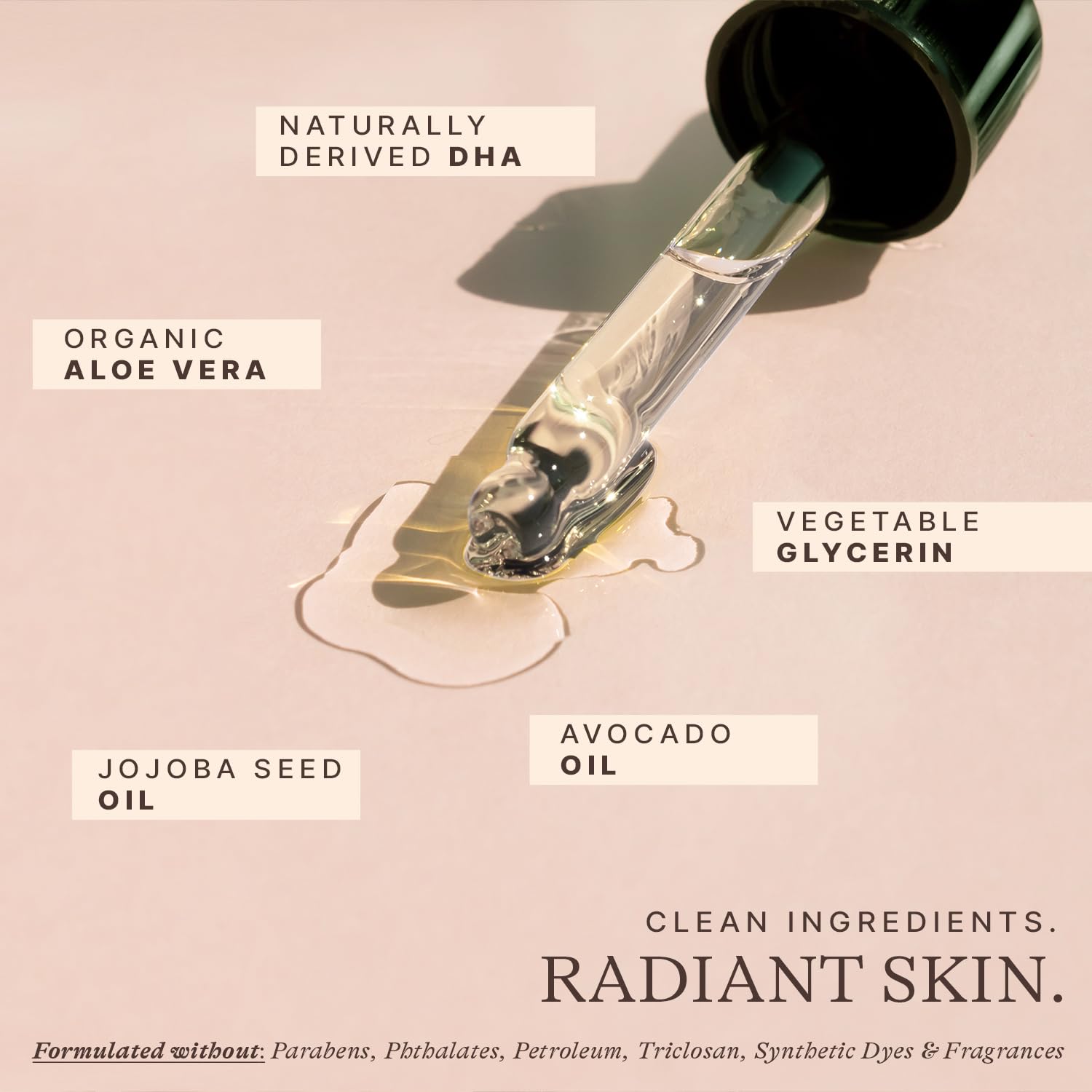 - CLEAN INGREDIENTS & NO HORRIBLE SMELL: There is a reason why we have the highest rated self tanner. Our sunless tanner drops are formulated with natural & organic, skin loving vegan ingredients like aloe vera and coconut water. Have a gorgeous looking natural self tan without the stench or orange hue, making this the best self tanner for face and body.