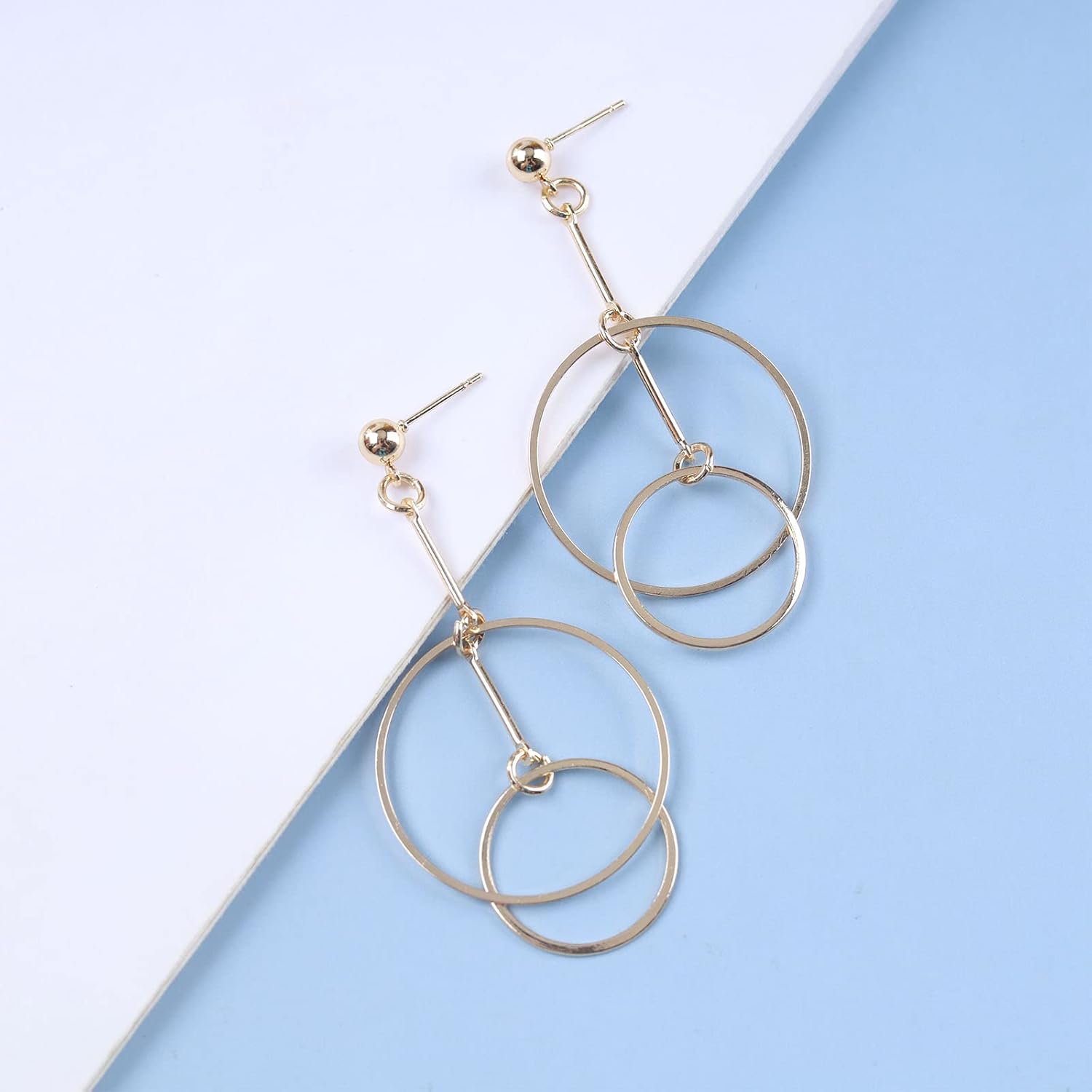 - Double circle earrings are made of high-quality good alloy materials, easy and comfortable to wear.