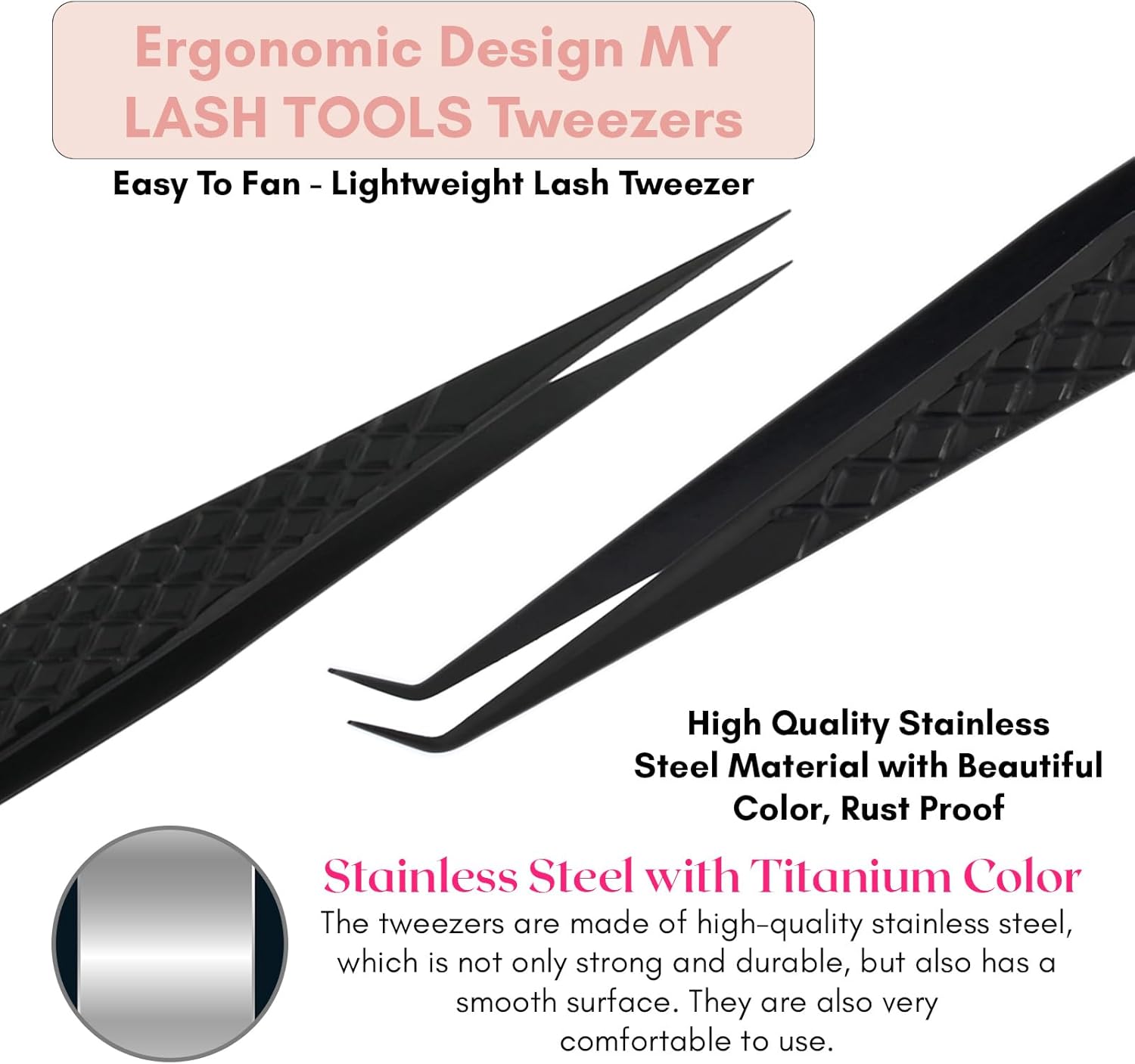 - Premium Material: Professional lash tweezers for eyelash extensions are made with Japanese Stainless Steel for accuracy and precision. Lash tweezers are covered with high-grade color finishing that makes them more resistant and easier to clean and disinfect. Tweezers are hand-made for enhanced performance & productivity.