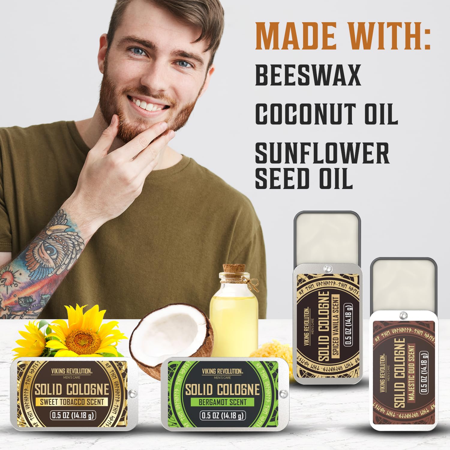 Viking Revolution 4 Pack Mens Colognes - 0.5 Oz Solid Perfume with Spiced Vanilla, Sweet Tobacco, Majestic Oud, Bergamot - Travel Wax Balm Cologne