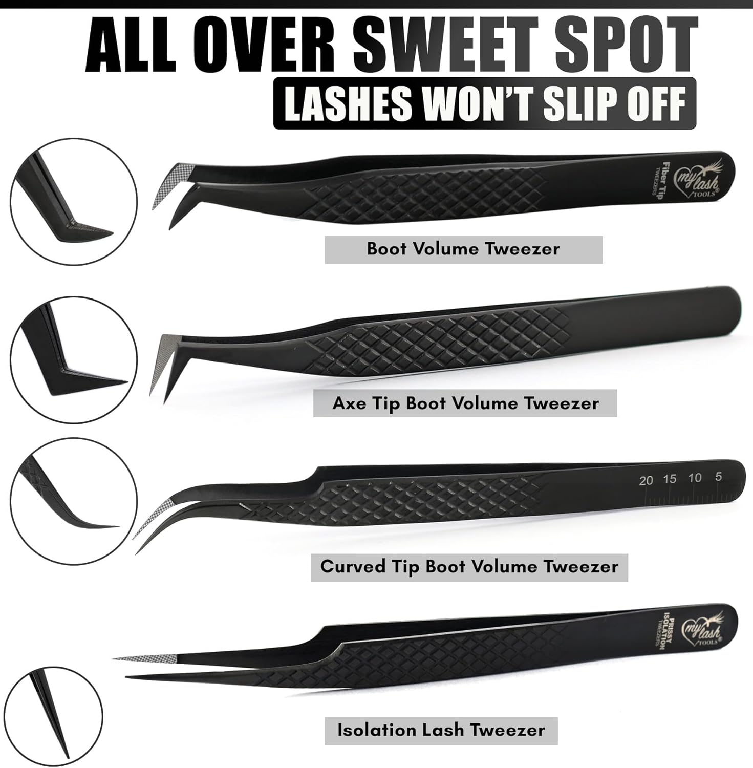 - π MULTI-FUNCTIONAL - Volume tweezers eyelash extensions set for perfect lash extensions. Lash tech tweezers Prefect for all methods of fanning, Select, isolate, and pick up lashes with ease. Best lash tweezers fiber tip for all methodas including on-the-strip, rainbow, shimmy, sticky dot and pinching.