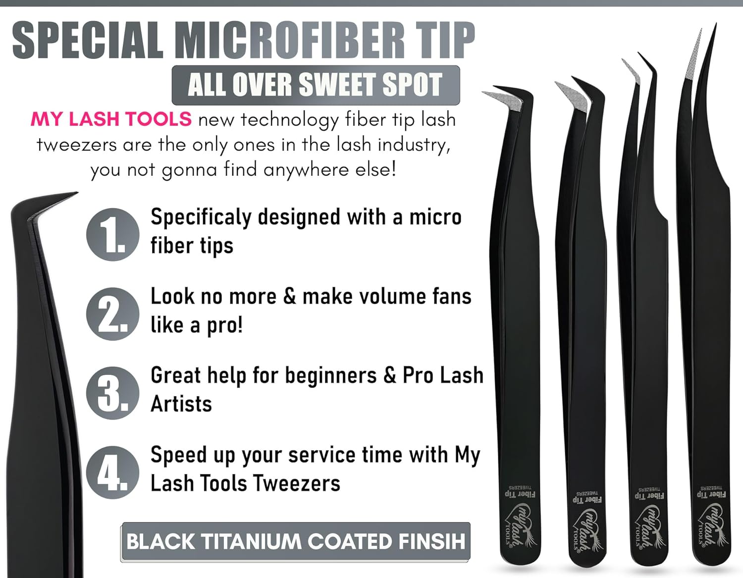 - π MULTI-FUNCTIONAL - Volume tweezers eyelash extensions set for perfect lash extensions. Lash tech tweezers Prefect for all methods of fanning, Select, isolate, and pick up lashes with ease. Best lash tweezers fiber tip for all methods as including on-the-strip, rainbow, shimmy, sticky dot and pinching.