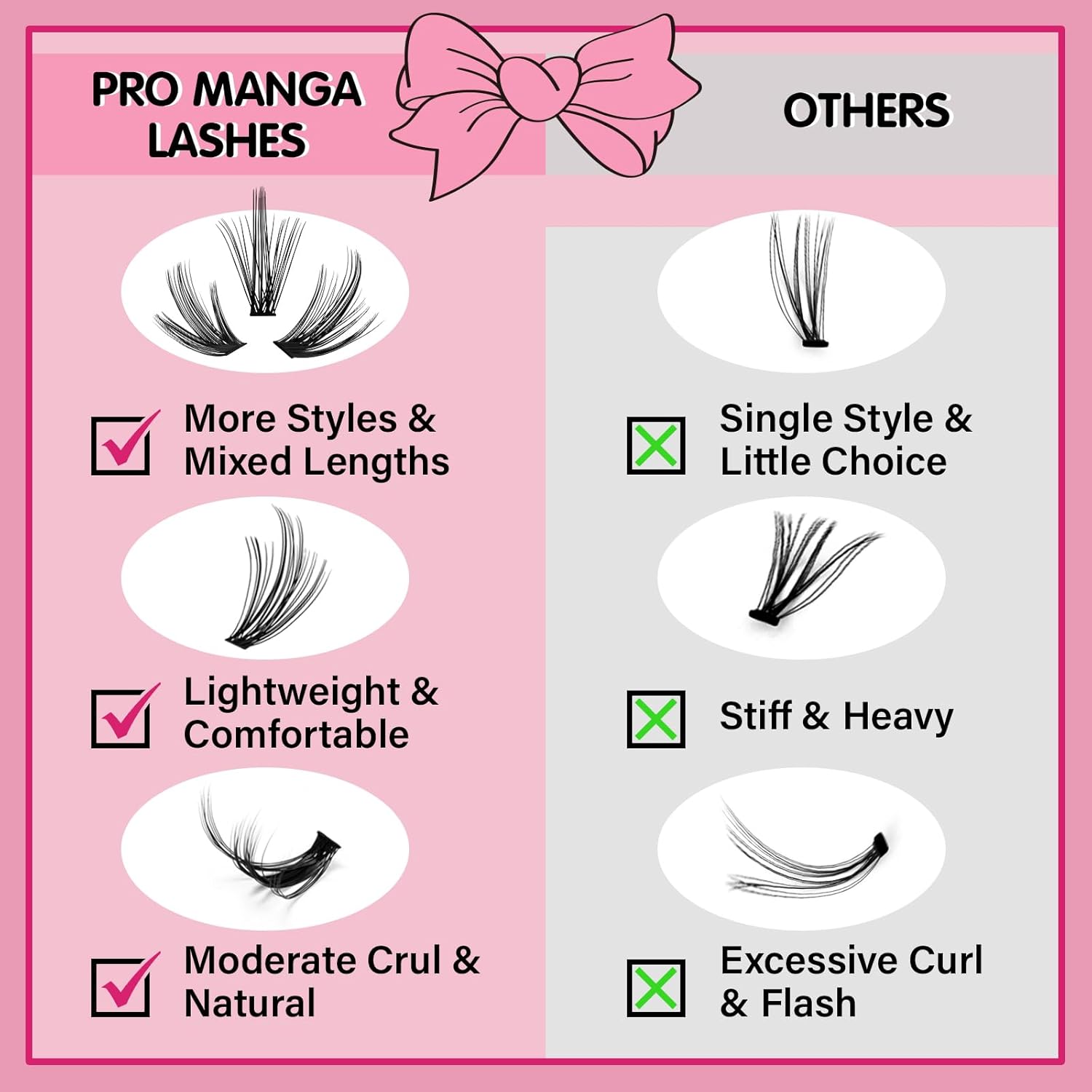 280 Pcs Individual Lashes 50D Mixed Lash Clusters Devil Style Lashes That Look Like Eyelash Extensions Wispy Lashes DIY Individual Lashes At Home (50D-C-8-16mix,Manga)