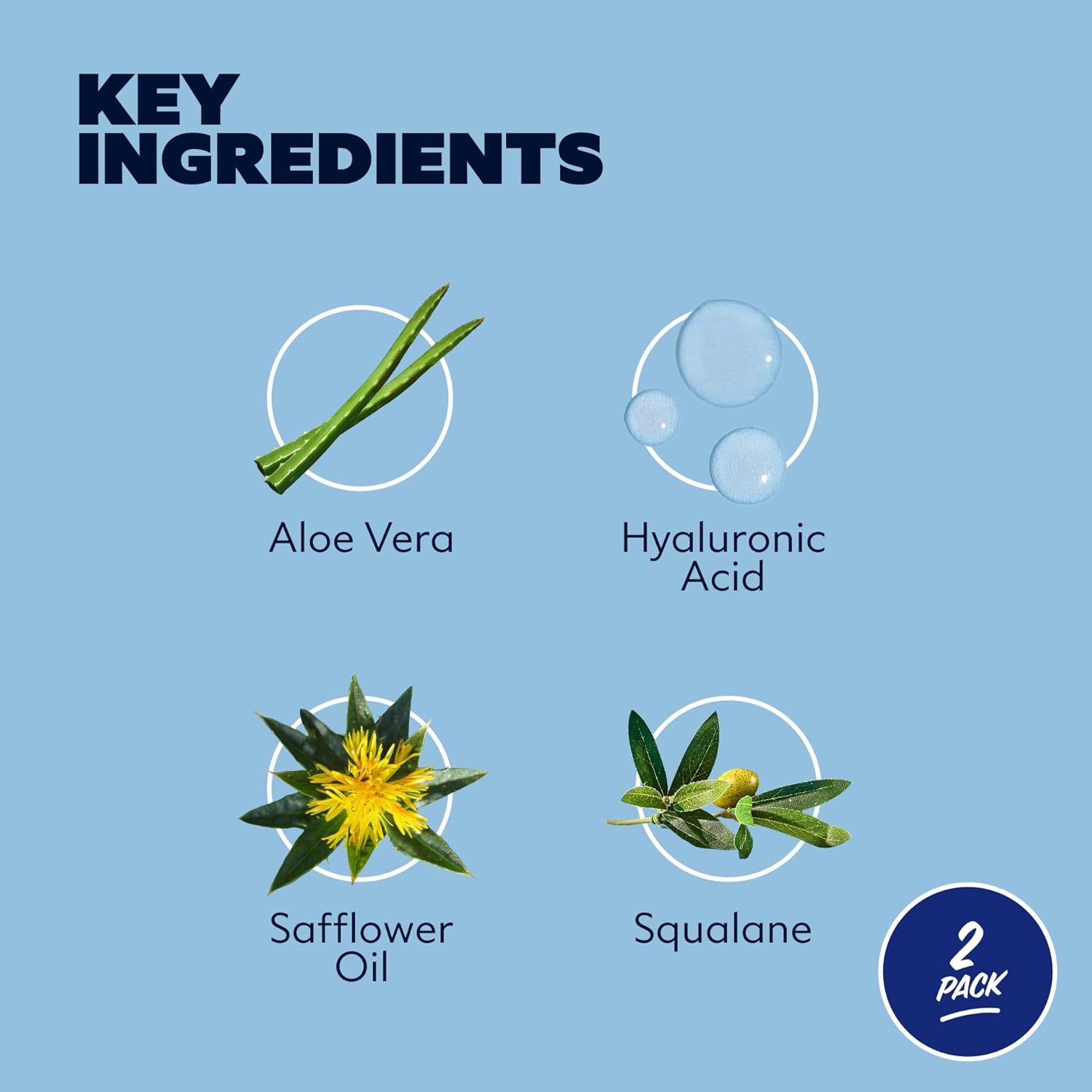 - KEY INGREDIENTS: Safflower Oil, Squalane and Sodium Hyaluronate.