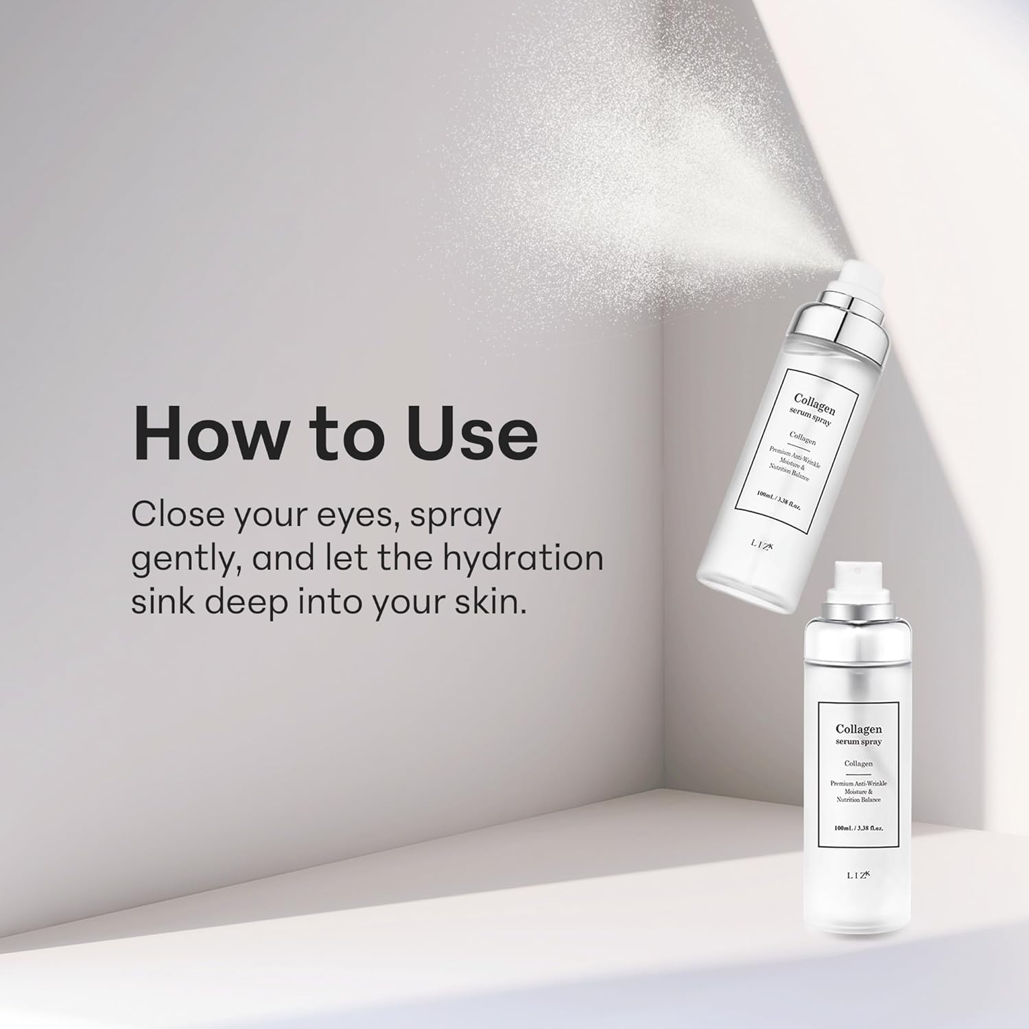 LIZK Collagen Serum Spray for Face 100ml (3.38 fl.oz) Glass Skin,easy to use, sparying at first step in skincare,body care, moisture mist, korea cosmetics