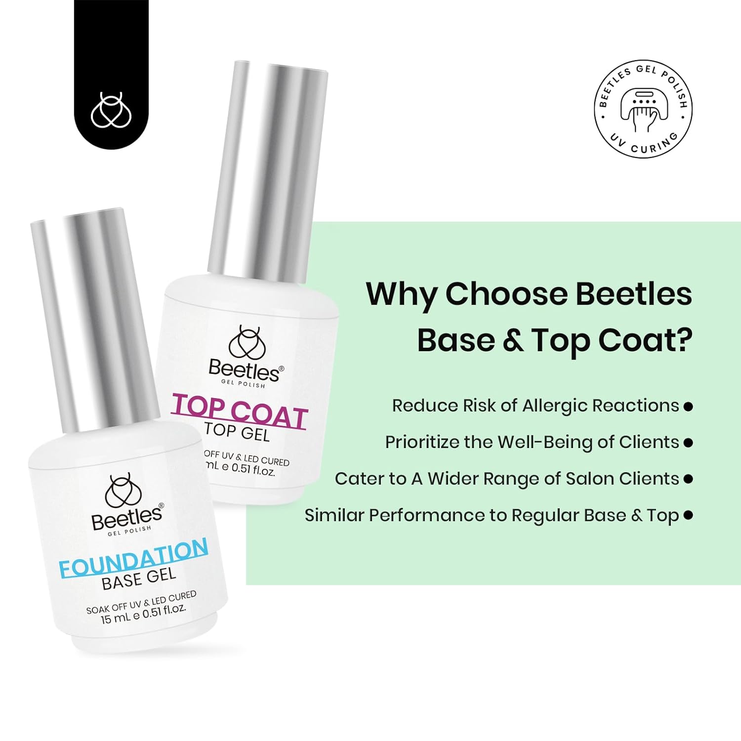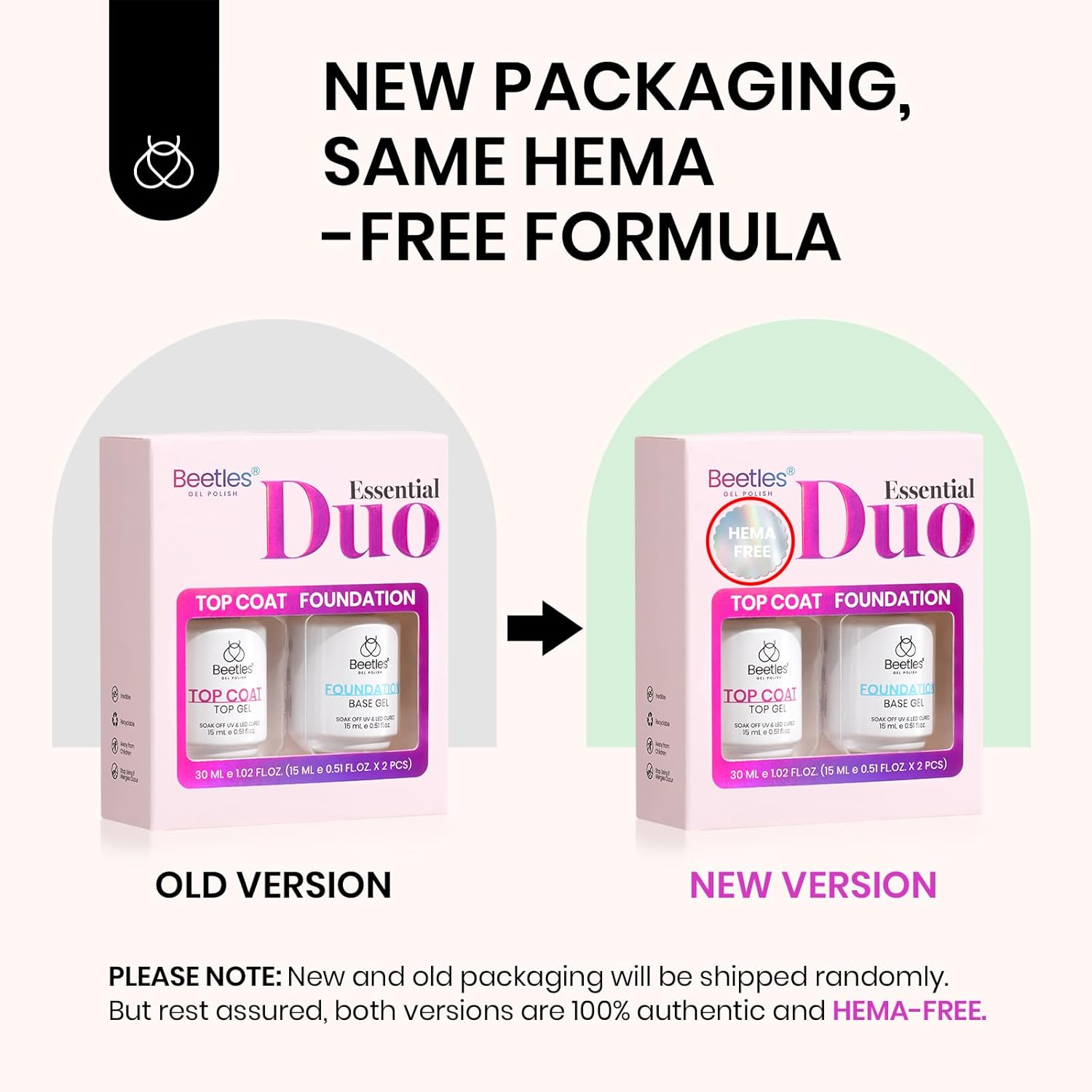 - Hema-Free Gel Base and Top Coat Set: Beetles launches a new HEMA-free gel base coat and top coat set with healthier ingredients. You donβt have to worry about HEMA allergies when doing a manicure, providing a safe and healthy nail care experience. Please read the product ingredient list and instructions carefully. If you have any questions, contact us to help you. Tips: Avoid touching your nails after curing the top coat for 2 minutes to enhance the shine.