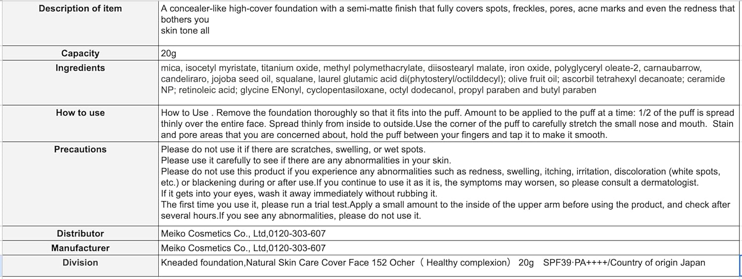 NATURACTOR Concealer 152 Natural Skin Care Cover Face 0.7 oz - Full Coverage Foundation, Made in Japan
