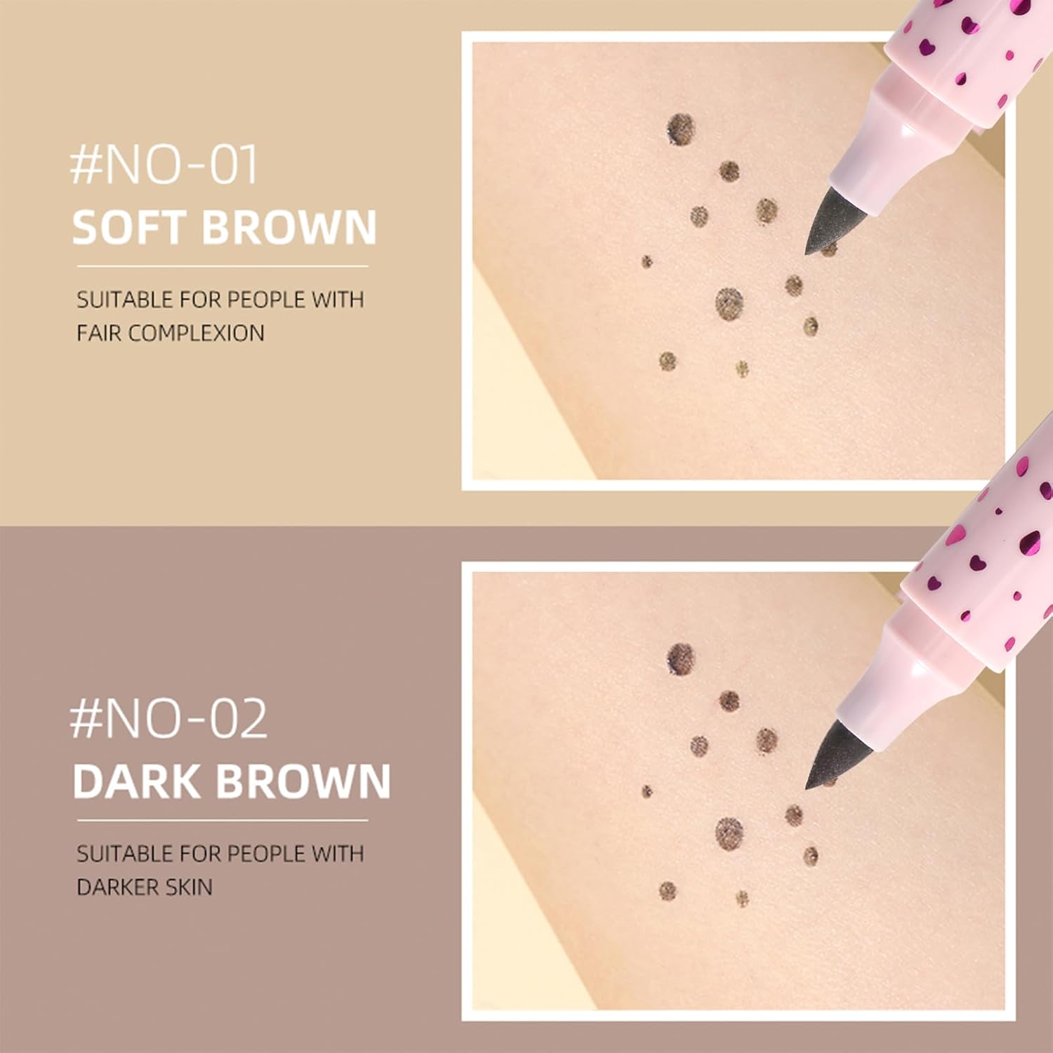 - 【VALUE FAKE FRECKLES PEN SET】Freckle Pen has 2 colors to choose from light brown and dark brown. You can change the size and shape of freckles according to your needs. (Note: Shake well before using.)