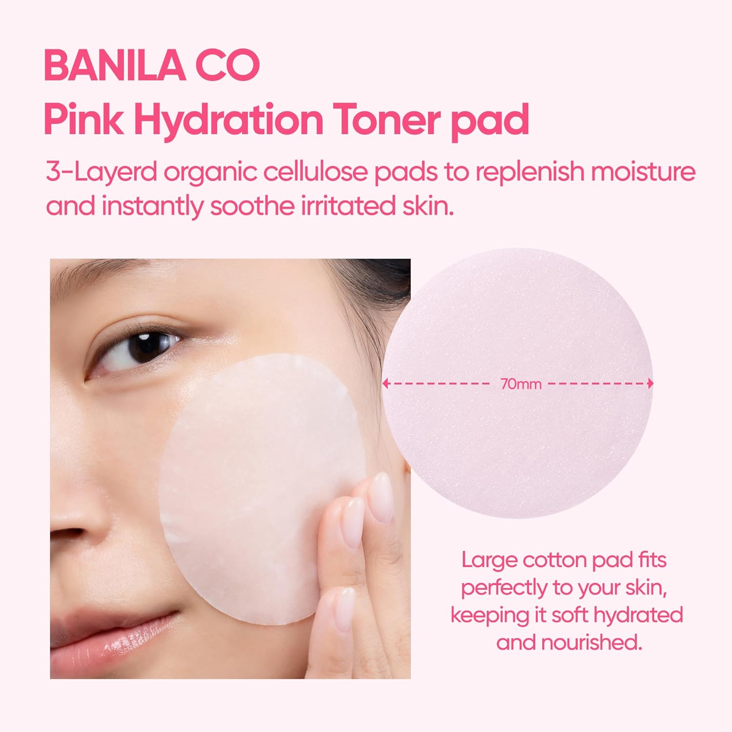 BANILA CO Clean it Zero Pink Hydration Toner Pad | Vegan Korean 3-Layered Pads | Hyaluronic Acids and Vitamin Complex to Moisturize and Soothe Skin | Hypoallergenic, Alcohol Free (70 Pads)