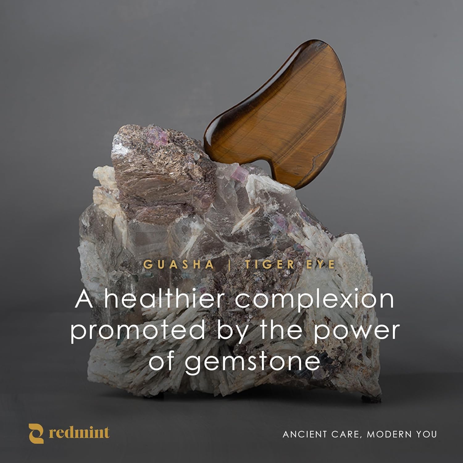 - TIGER EYE GEMSTONE. Experience the power of Tiger Eye Gemstone, which enhances the effectiveness of your Gua Sha ritual, giving you a more defined and rejuvenated look