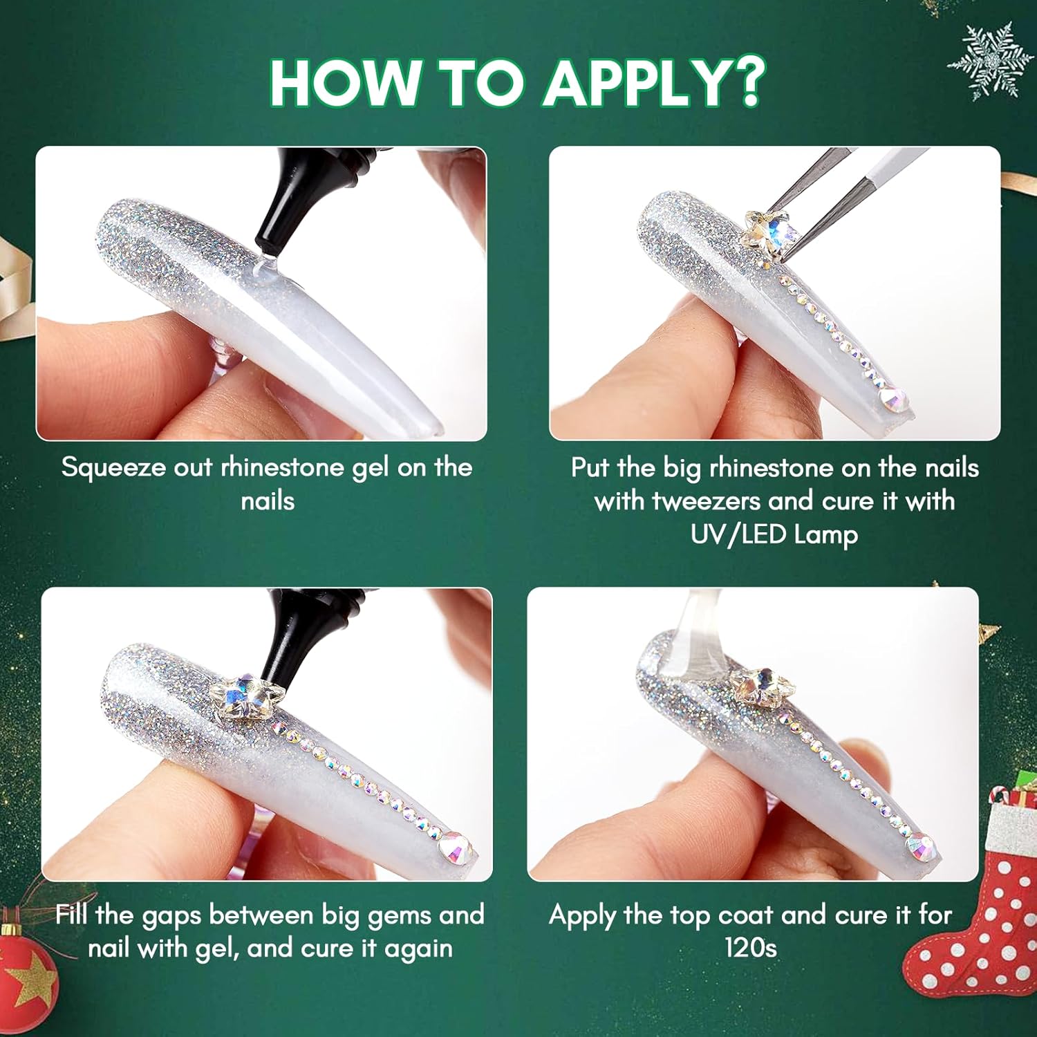 - Easy Application: Suitable for artificial nails, press-on nails, mobile decorations, and more. Start by applying the rhinestone glue on your nail, then use the tweezers to place your desired Christmas charm on the nail, filling gap between the nail and the charm. Cure with a UV or LED lamp, then apply a top coat for a more durable and long-lasting effect.๏ผNote: The set does not include rhinestone glue gel๏ผ