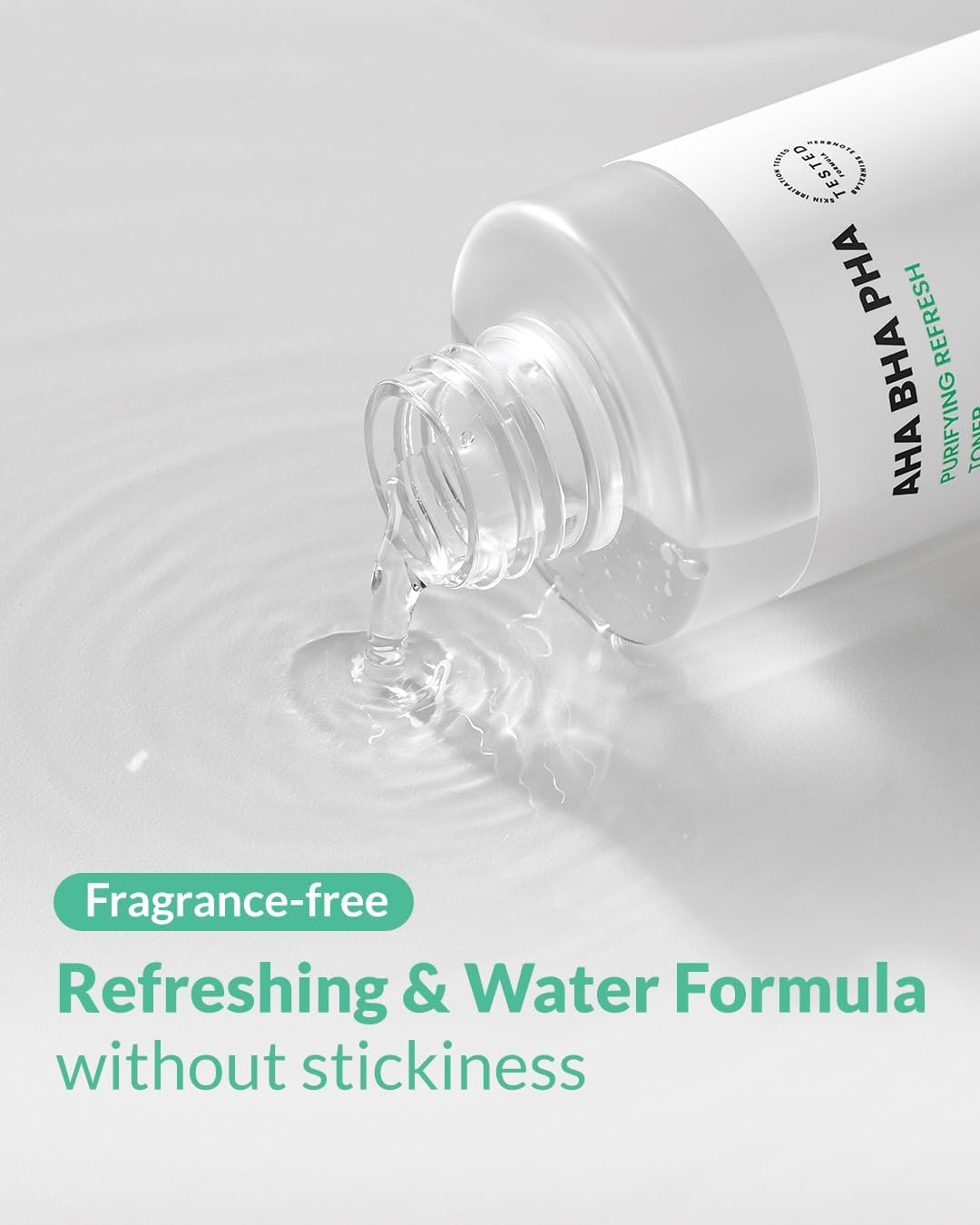 - REVIVE YOUR RADIANT SKIN: The AHA BHA PHA purifying refresh toner is your go-to for a resplendent skin tone. This exceptional toner addresses the leading factors behind breakouts and eliminates skin troubles, leaving your skin looking radiant and thoroughly cleansed. Incorporate this product into your skincare routine for results that glow as beautifully as you do. Our tone is ideal for all skin types, enhancing your skin concerns effectively with scientifically-proved ingredients