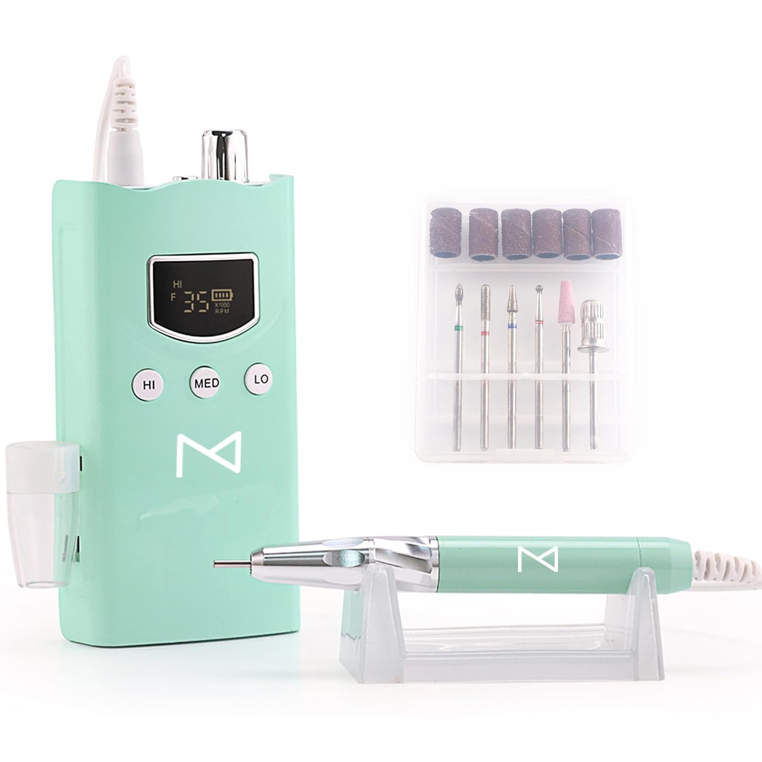 M GEM Brushless Nail Drill 35K RPM | Professional Cordless Efile Machine | Rechargeable Electric Nail File with Bits | Portable Quiet Low Vibration Tool for Acrylic, Gel, Natural Nails (Teal)