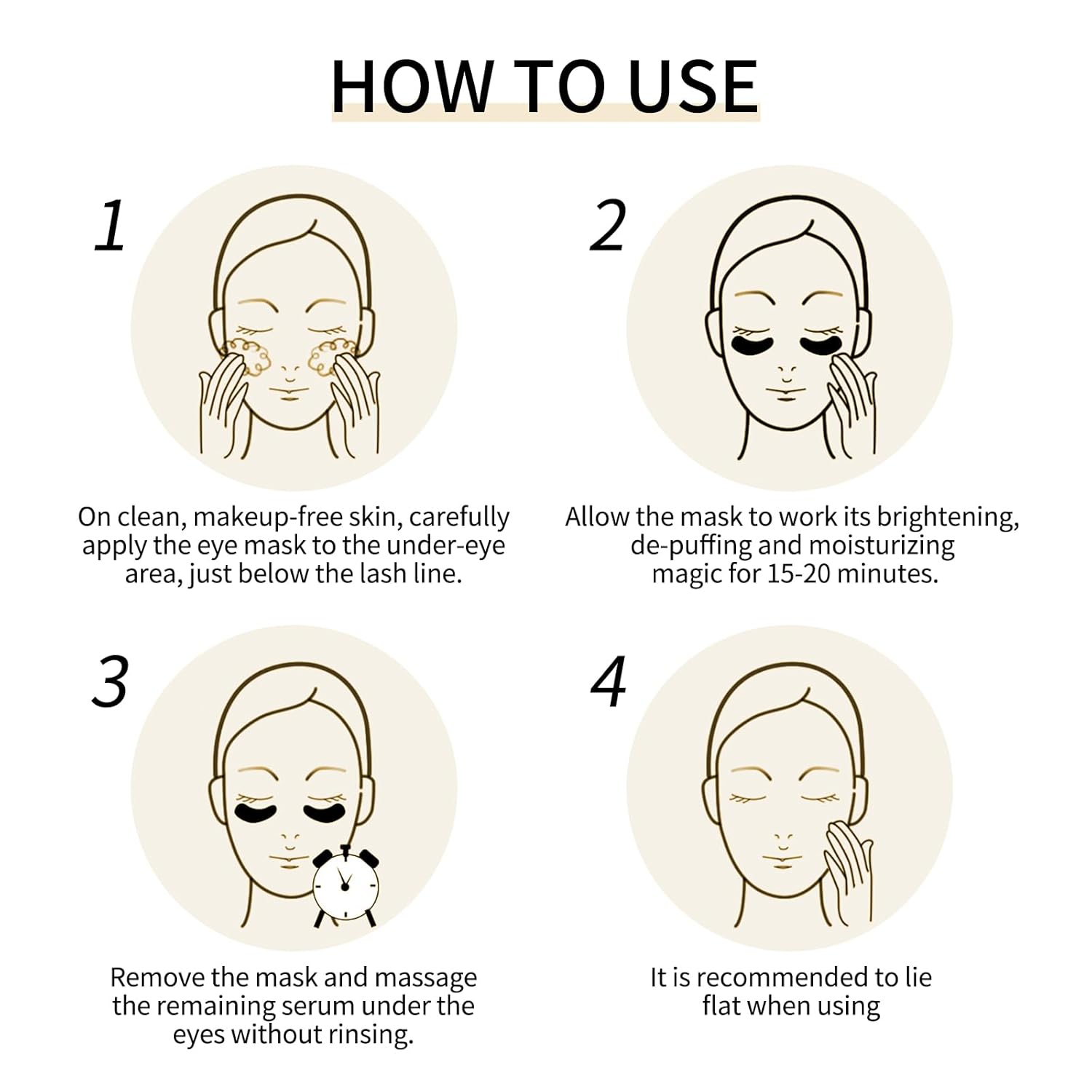 - EASY TO USE - First clean your face and eyes with warm water, then gently apply the eye mask under your eyes to secure it in place. Leave on for 15-20 minutes, remove the mask and gently massage in the remaining serum. For best results, use twice a day or at least once a week.