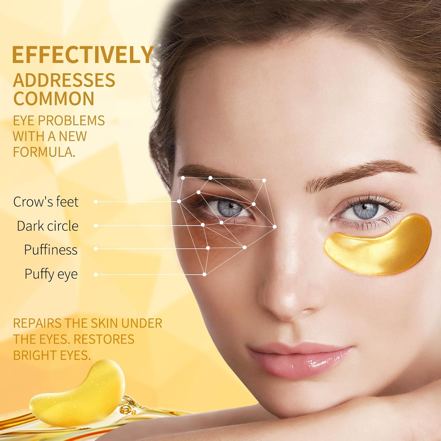 - SAFE & EFFECTIVE - Our eye masks are formulated with collagen, 24K gold and a variety of natural ingredients that are 100% harmless, gentle yet effective, and quickly penetrate the skin's underlying layers. Suitable for all skin types. All you need to stay beautiful is a gold eye mask.