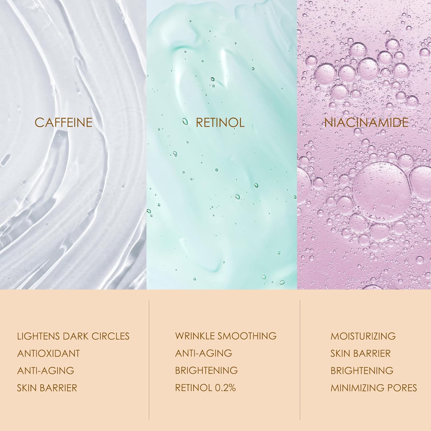 - EYE FOR HYDRATION: Our Eye Bags Treatment for Men & Women is formulated with ingredients like retinol, hyaluronic acid, niacinamide, acetyl hexapeptide, and ascorbic acid. This powerful blend not only reduces the visibility of fine lines and wrinkles but also offers sustained moisturization for the delicate eye area.