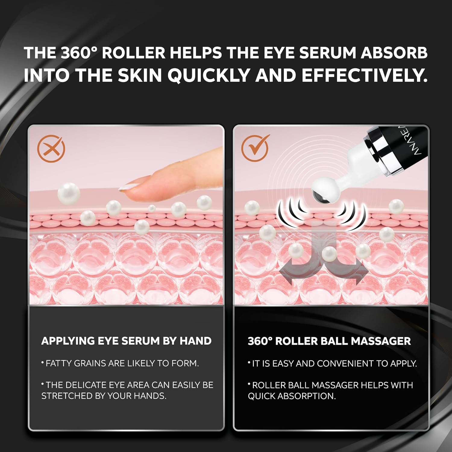 - EASY AND USER-FRIENDLY: Our Eye Cream for Wrinkles comes with a distinctive 360° cooling stainless steel roller-ball for application. This tool is especially effective when paired with our Dark Eyes Circle Treatment. The Eye Roller for Eye Wrinkle Cream for Women & Men ensures an even spread of the serum around the eyes while also offering a thorough massage for the eye contour.