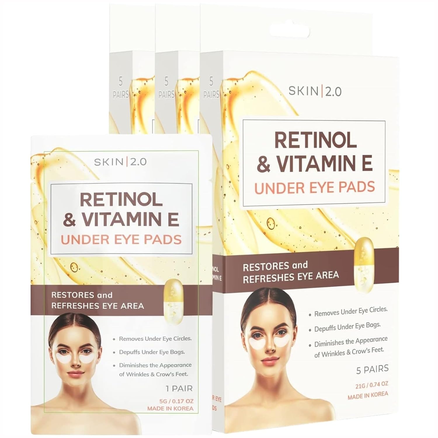 - HYDRATING AND MOISTURIZING: Experience deep hydration and moisturization with our under eye pads. The rich blend of Retinol and Vitamin E works to replenish moisture, leaving your under eye area looking smoother, plumper, and more vibrant.